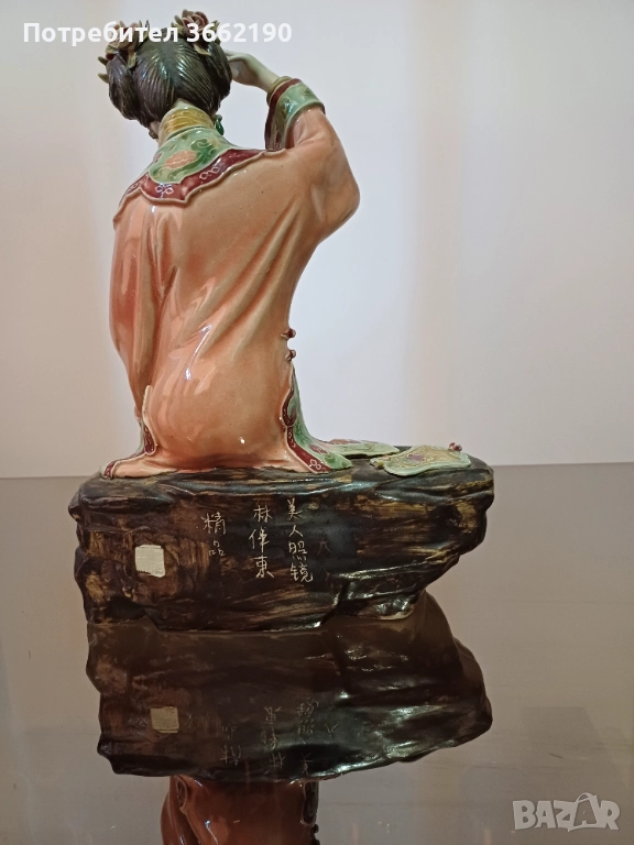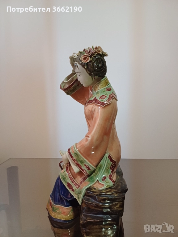 Много изящна керамична статуетка на седяща китайка. С надпис. Височина 27 см. и дължина 20 см.Част от личната ми колекция. Моля, разгледайте и другите ми обяви!