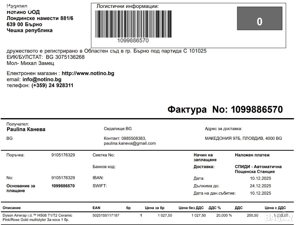 В Bazar.BG от 21 септември 2012г.