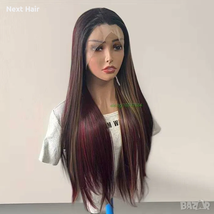 Омбре перука с дантела екстравагантен микс от червени и руси кичури → Обява 52909621