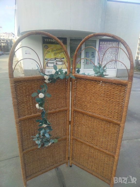 ратан с 2 пана от плетено естествен ратан в цвят светло кафяв. Всяко пано е с размер 40х170 см. и дебелина 2 см и се сгъва лесно за удобно съхранение. Подходящ за всекидневна или спалня във всеки дом, може да се използва и като развелител в градината.