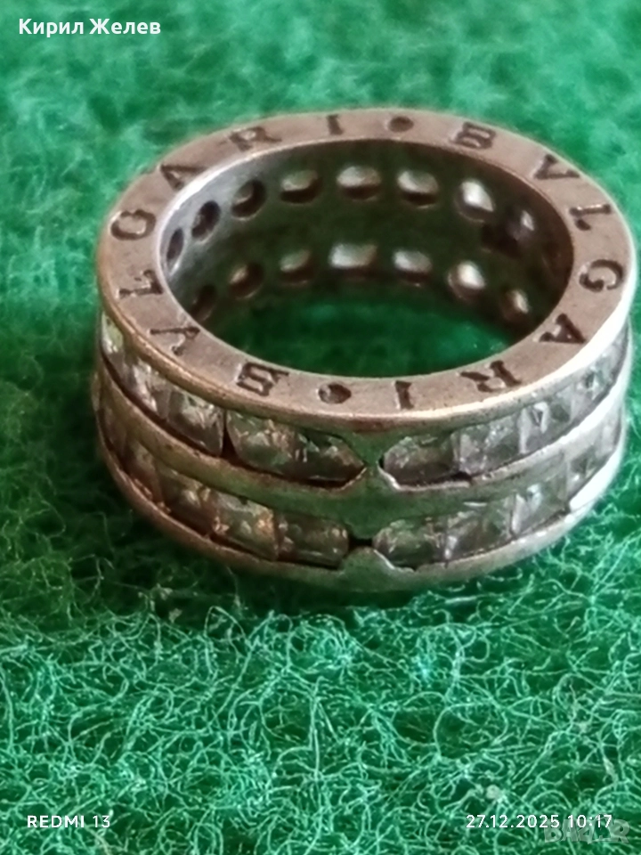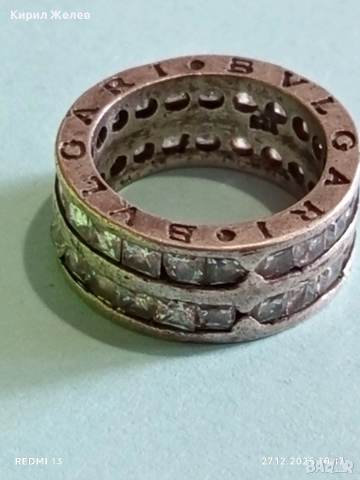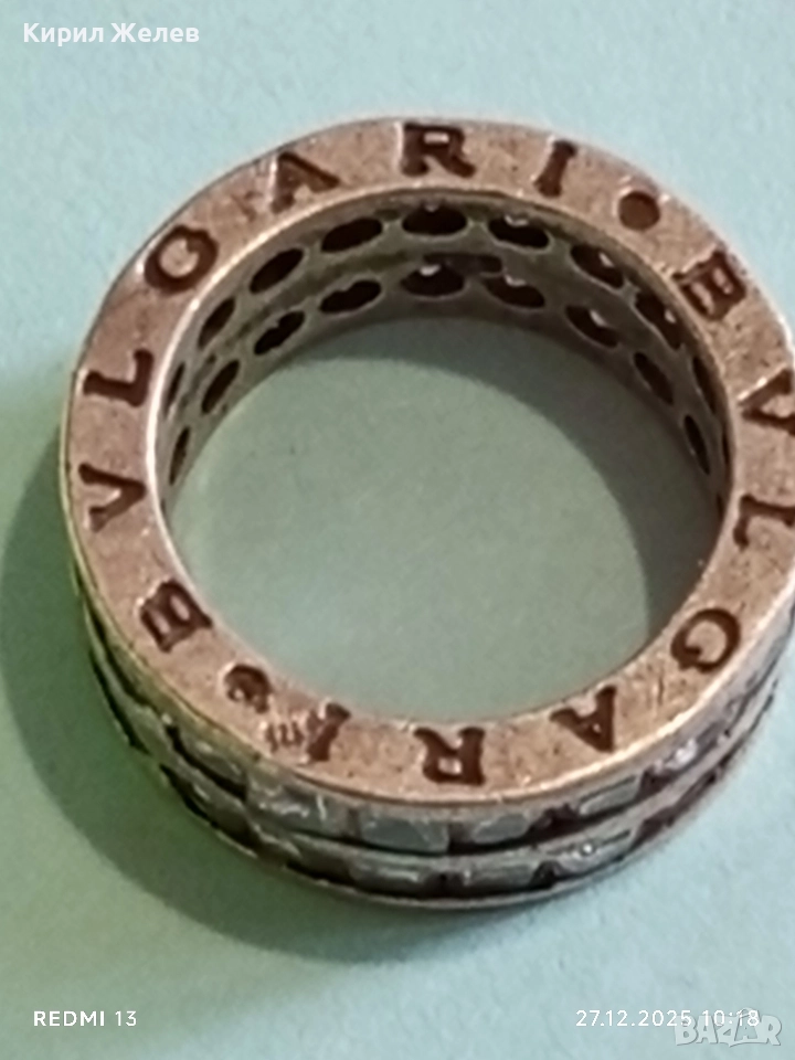 Луксозен сребърен пръстен BVLGARI с кристали марков 22248