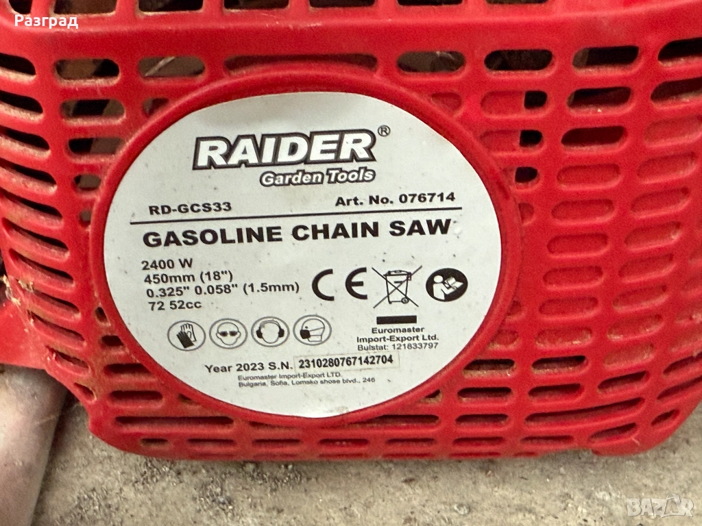 е бензинова резачка с автоматично смазване на веригата. Разполага с мощен 2400-ватов мотор и автоматична спирачка за защита. С нея ще може да режете дървени греди, да оформяте короните на дърветата, да режете дърва за огрев и други. Обема на резервоара на маслото е 250 ml, а на горивото - 550 ml.