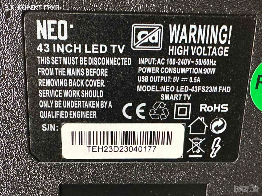 Продавам 43" Full HD Смарт телевизор на марката Neo в отлично състояние. Телевизора почти не е ползван. Работи без никакви проблеми.
