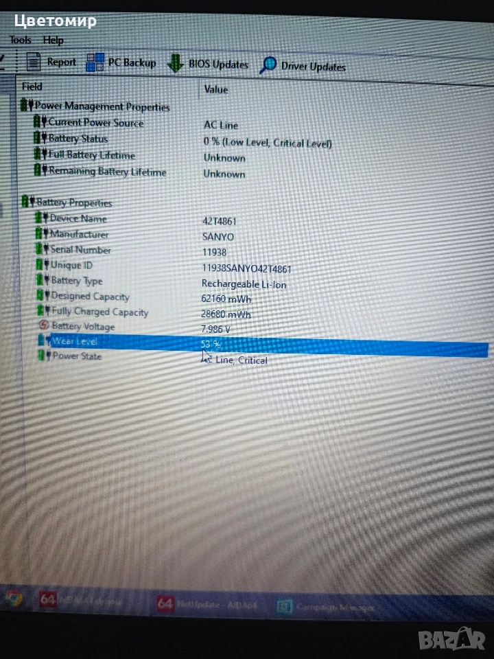 - батерията е на 53% износване