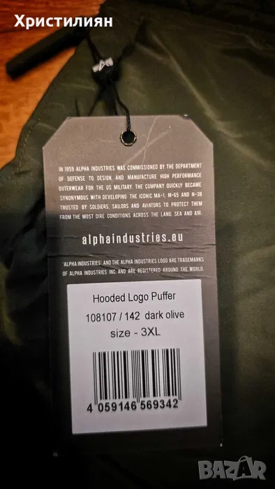 ALPHA INDUSTRIES Logo Puffer яке с качулка 3XL мъжко → Обява 52910373