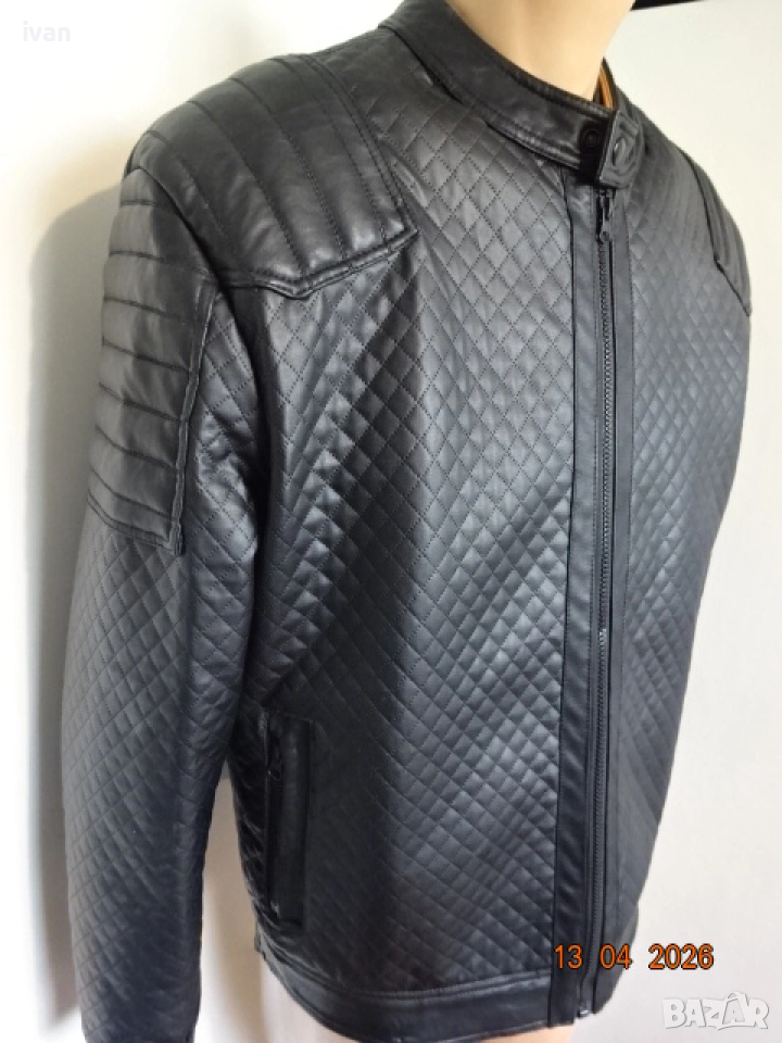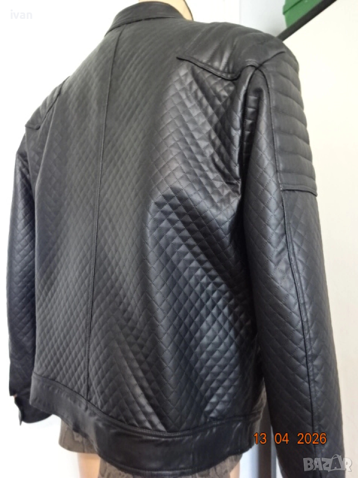 Ново кожено яке, размер ХL Дължината на якето /отпред по ципа/ 64 см с яката, дължина ръкав 67 см, гръдната обиколка на якето е128 см.