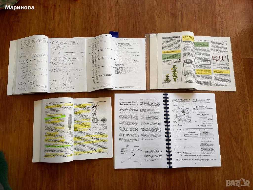 Учебниците са почти чисто нови, с малко подчертавано в тях. Учебникът по математика е решен е с решени задачи.