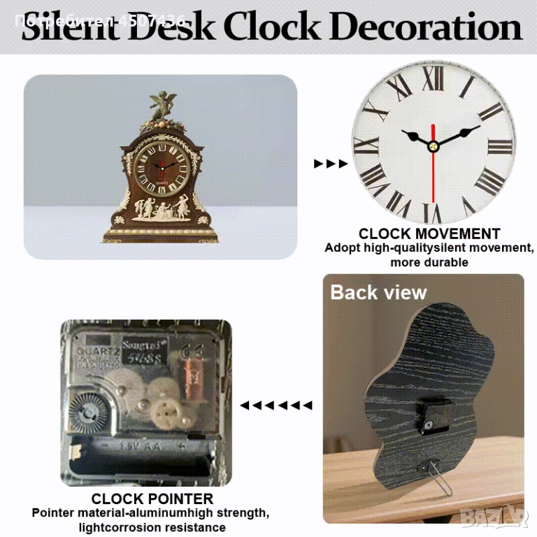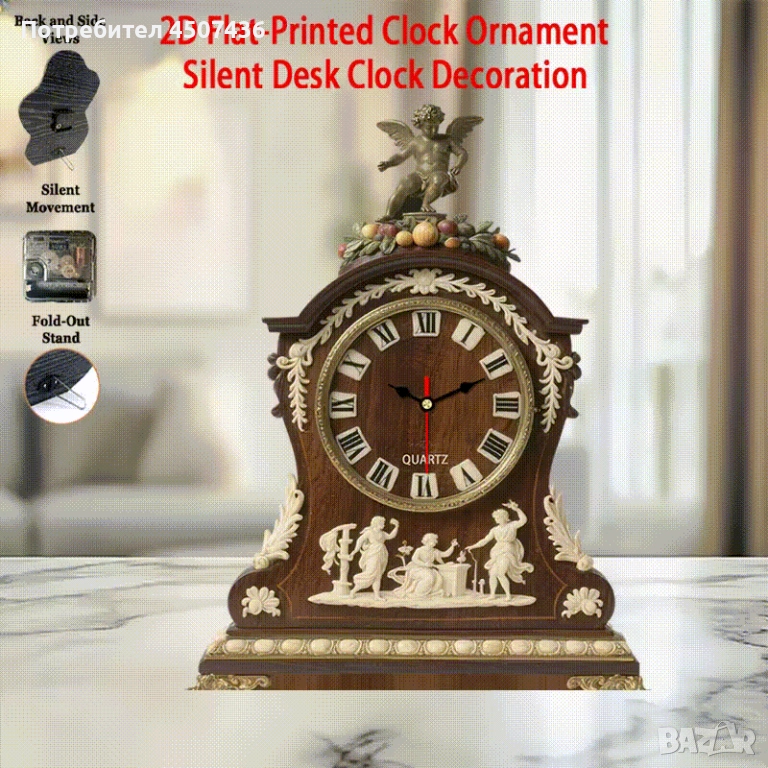 2D Плосък Европейски Стил Дървен Часовник, Тих, Работи на Батерии → Обява 52910812