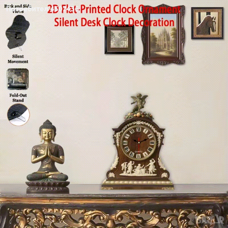 подходящ за всекидневна, спалня и бюро, декоративен часовник за маса, 2D