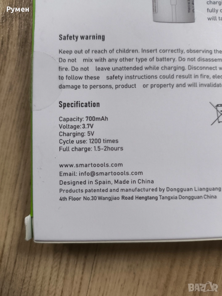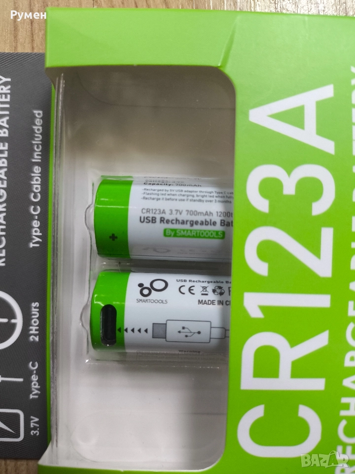 Зарядна батерия CR123A Li-ion 3.7 V 650 mAh → Обява 52910876