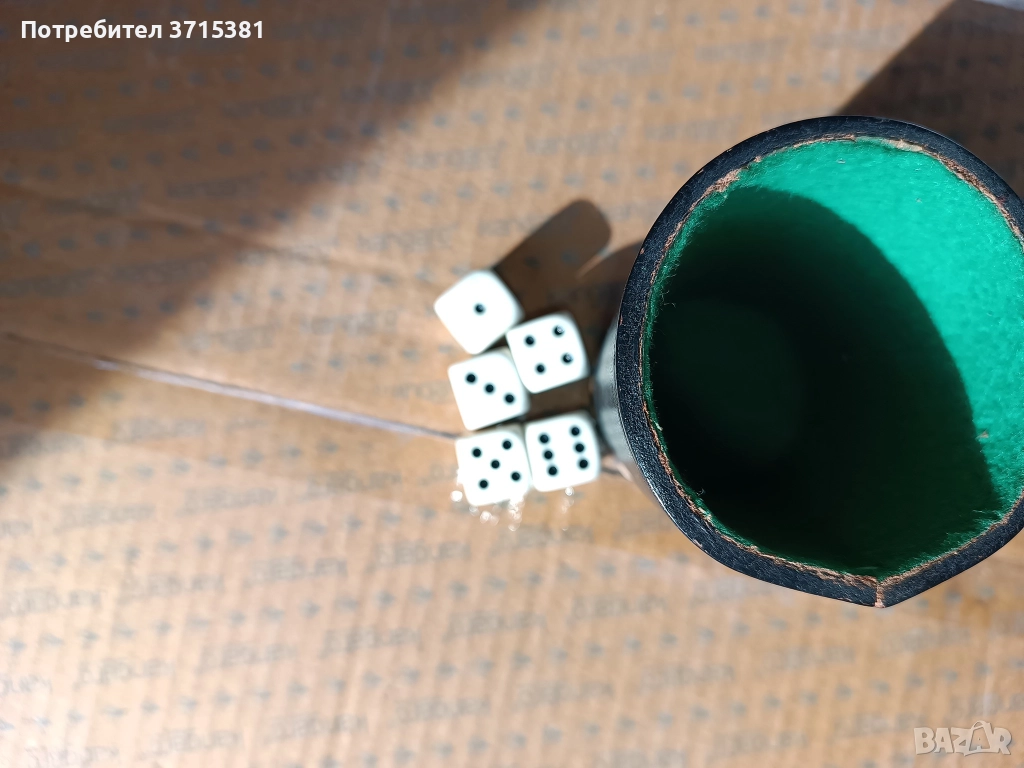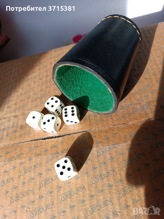 Кожена чаша със зарове за игра на барбут → Обява 52910974