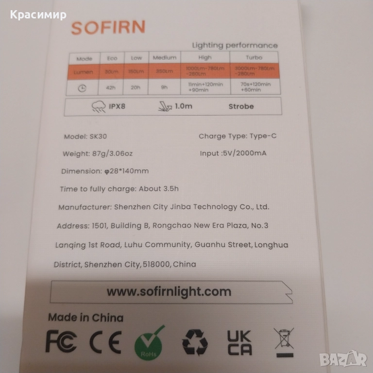 Тактическо фенер НОВ Sofirn SK30 → Обява 52911285