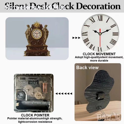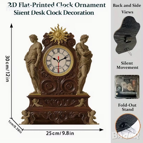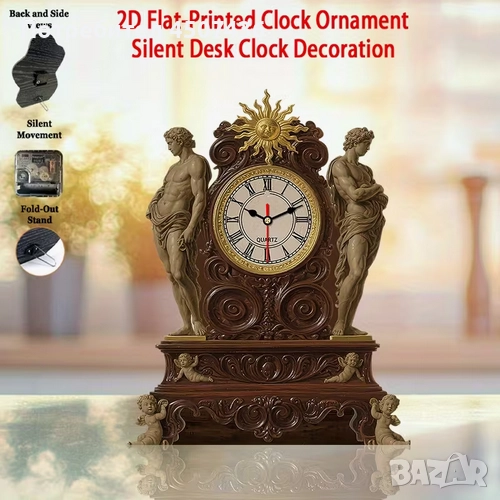 2D Плосък Европейски Стил Дървен Часовник, Тих, Работи на Батерии → Обява 52911378