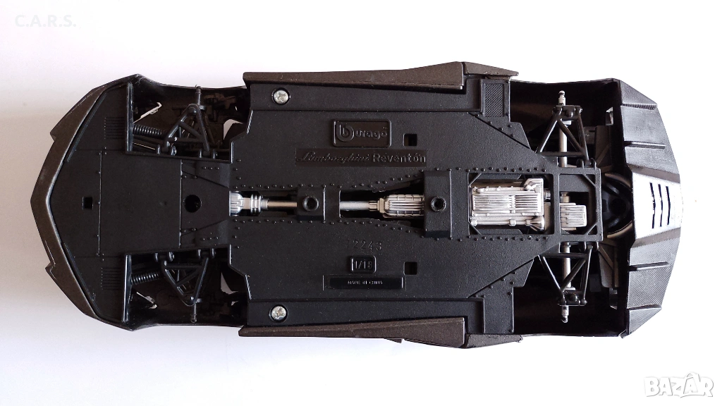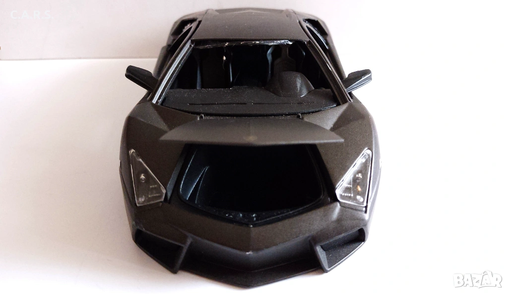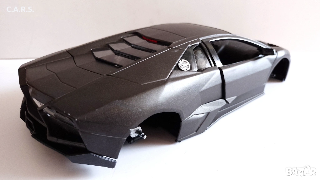 Метална количка с отварящи се врати и капаци за реставрация Bburago Lamborghini Reventon Dark Matt Gray - Мащаб 1:18, (липсват гумите, счупено предно стъкло и волан) - 15 EURO