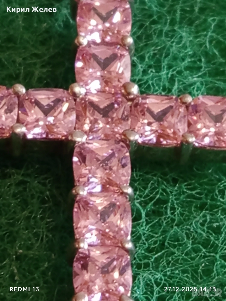 Фешън сребърна висулка инкрустирана с синтетични розови цирконий 52538