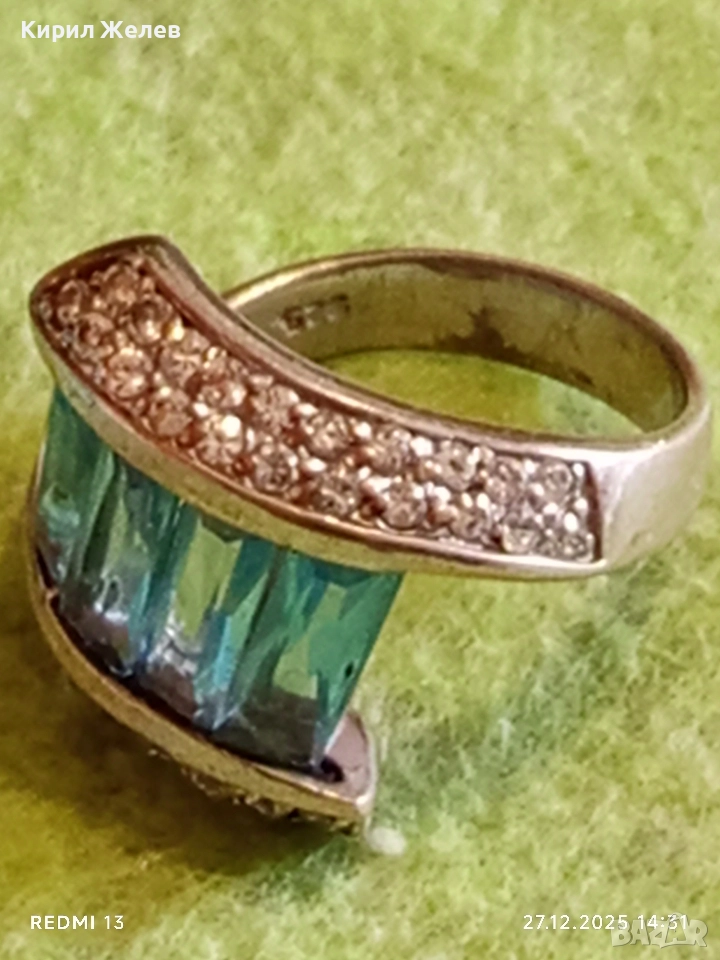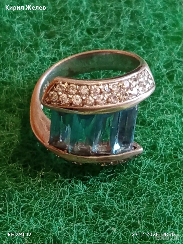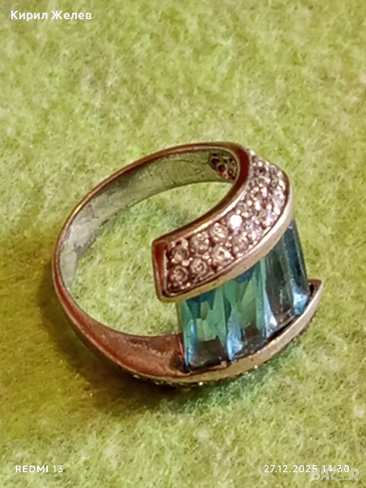 Разкошен Арт Нуво сребърен пръстен с СИН ТОПАЗ и кристали 52507