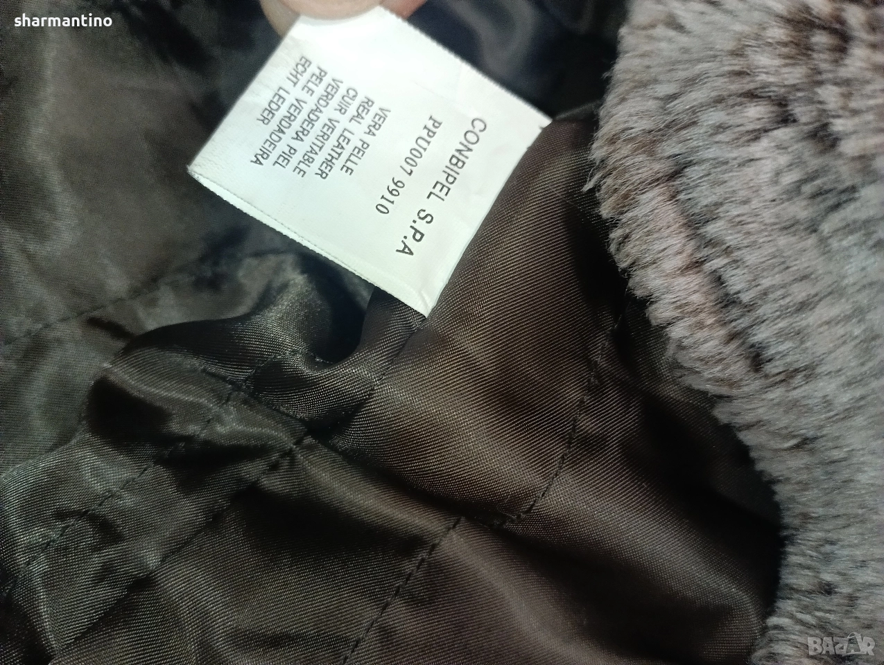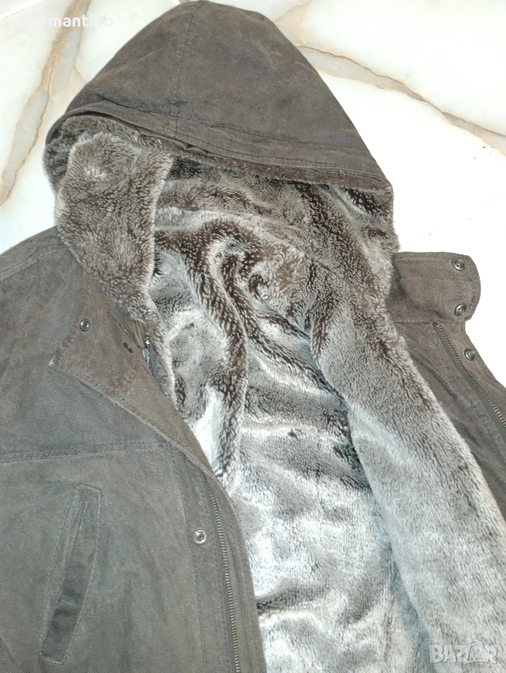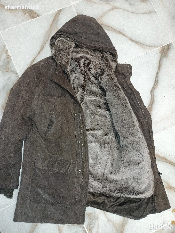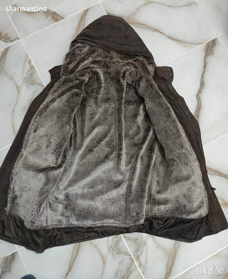 * МАРКА/МОДЕЛ - марково оригинално тъмно кафяво кожено палто Conbipel Vera Pelle. Със сваляема мека вата. Естествена кожа. С качулка.