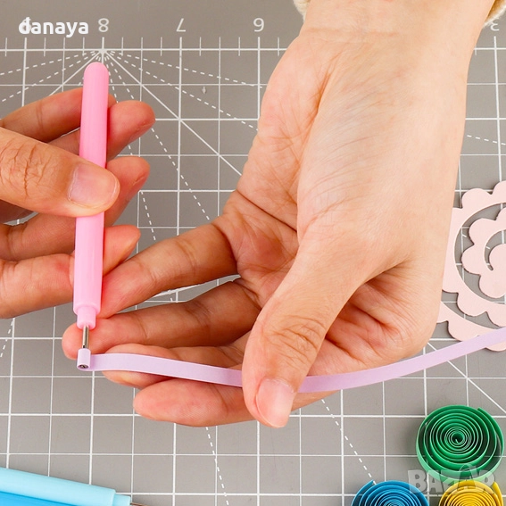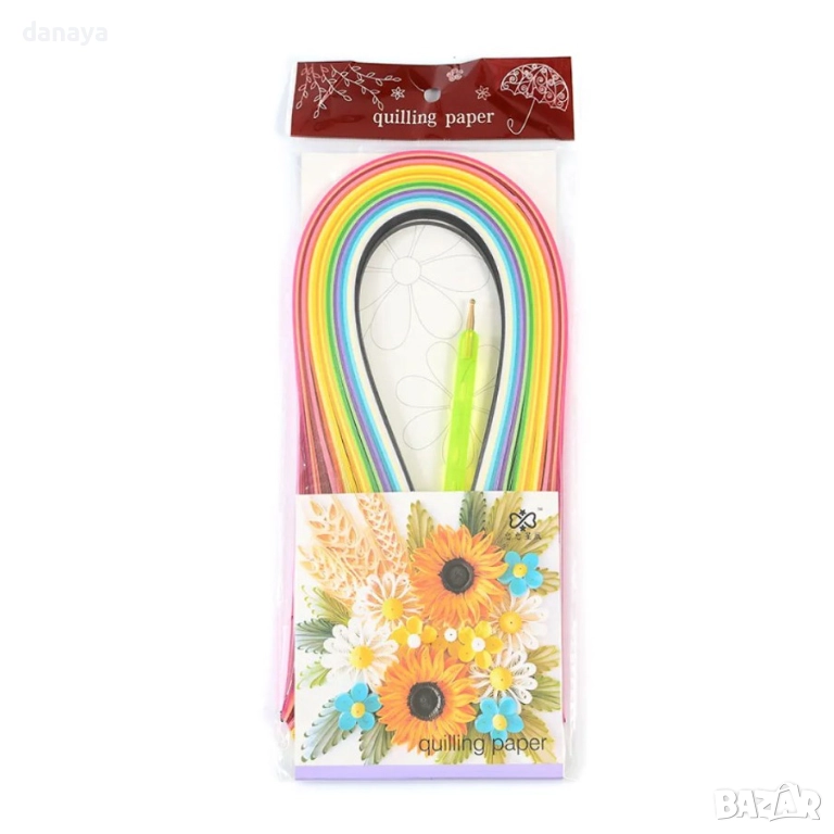 Комплект за квилинг за арт творчество и развиване на въображението в света на изкуството. Квилинг /quilling/ или paper filigree /изделие от хартия с нежен строеж/ е форма на изкуство, което включва използването на ленти от хартия, които се навиват и залепят заедно, за да се създават декоративни проекти.