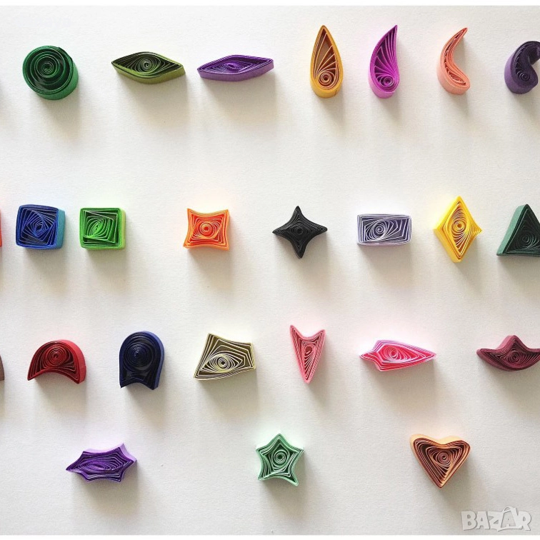 Хартията се навива около специален инструмент за да се създаде основна форма. След това връхчетата на хартията се залепят и се подреждат така, че да образуват разнообразни форми.