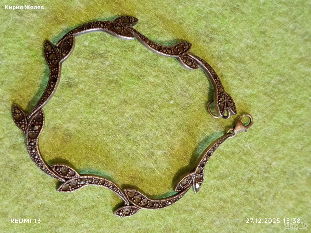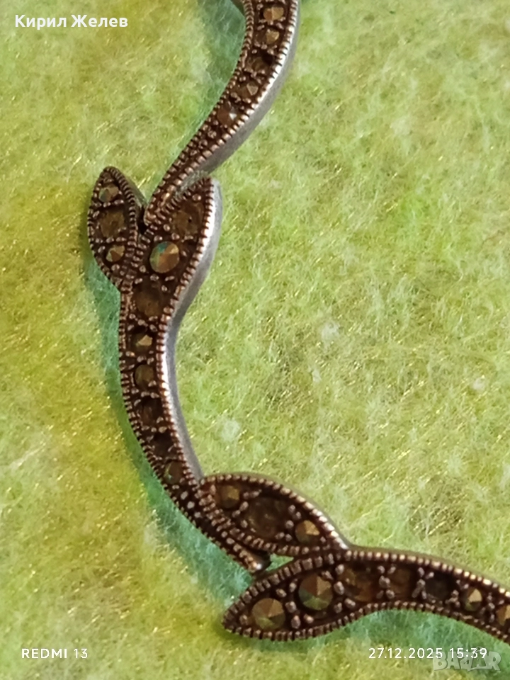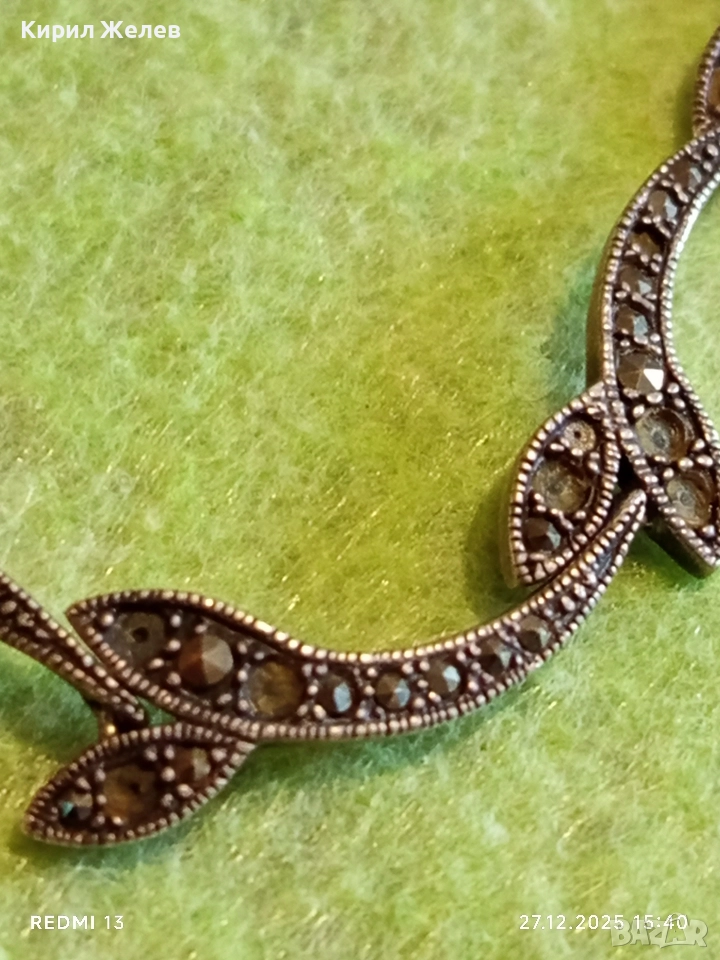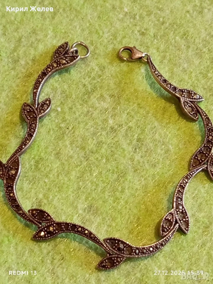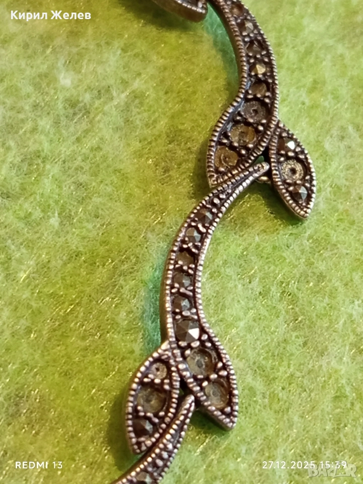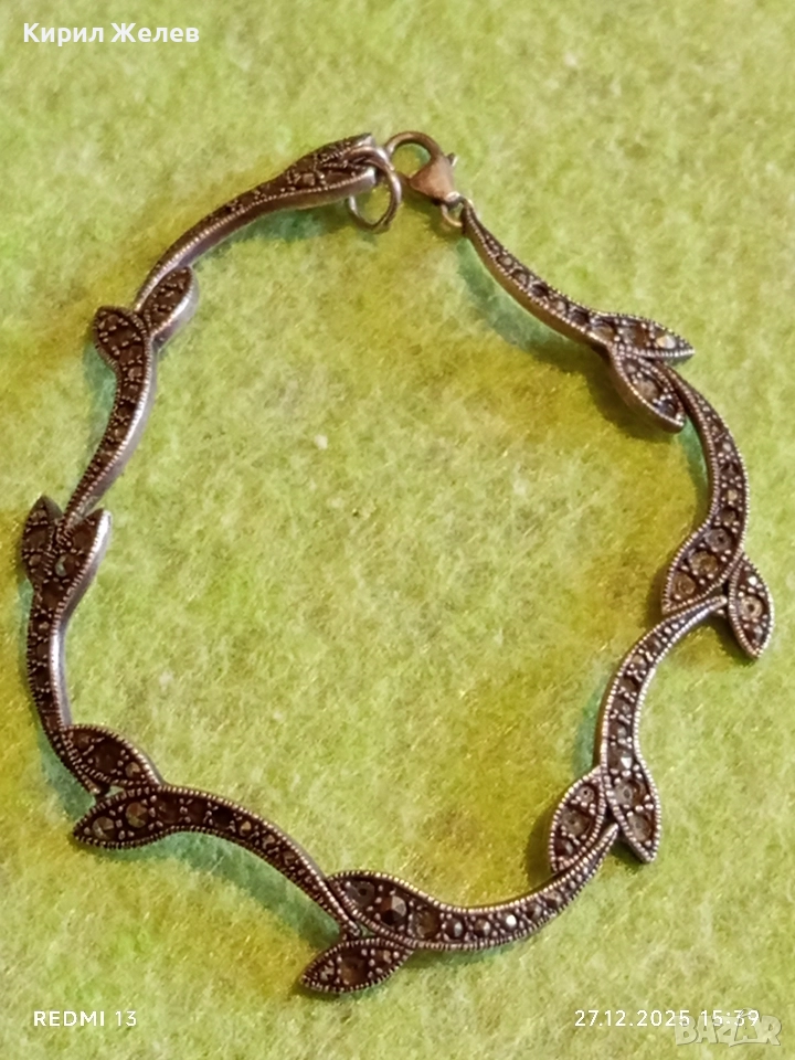 Сребърна гривна с МАРКЕЗИТ във формата на листа ювелирна изработка 43840