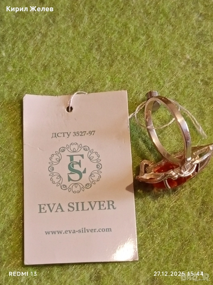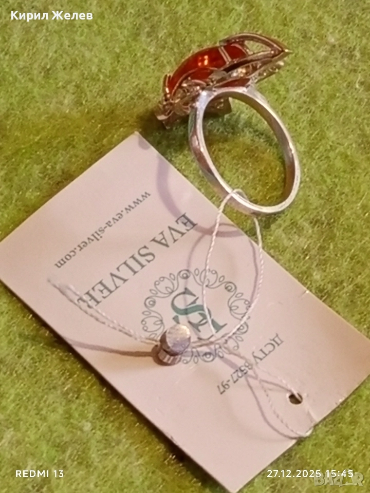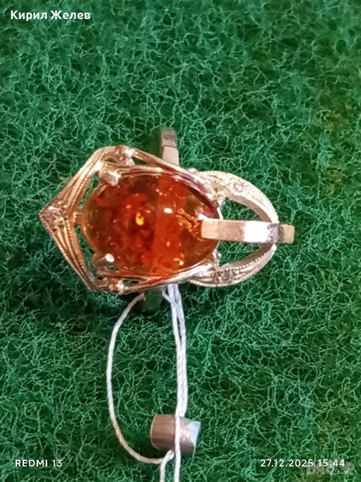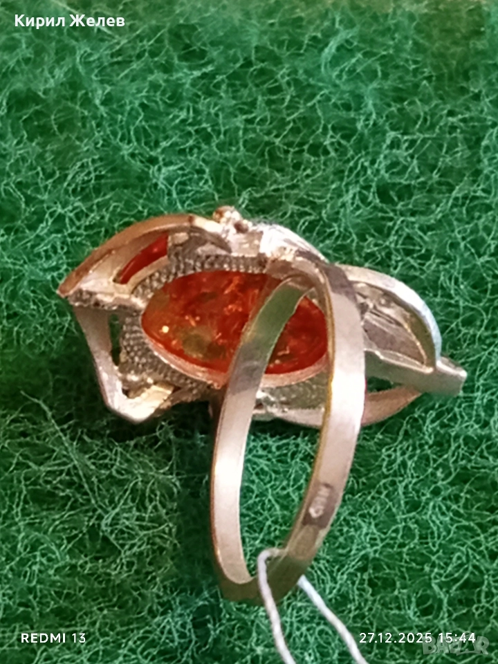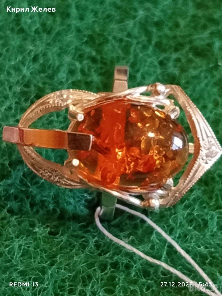 Дизайнерски сребърен пръстен с БАЛТИЙСКИ КЕХЛИБАР ювелирна изработка 37095