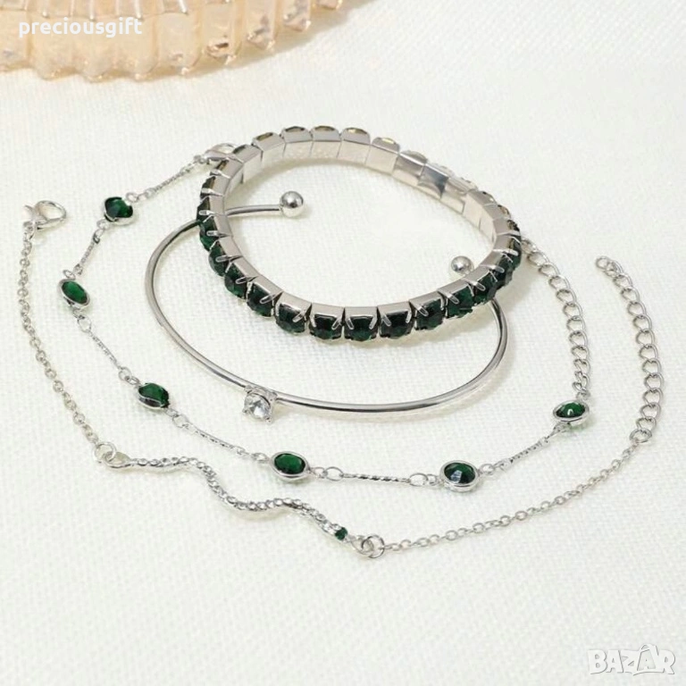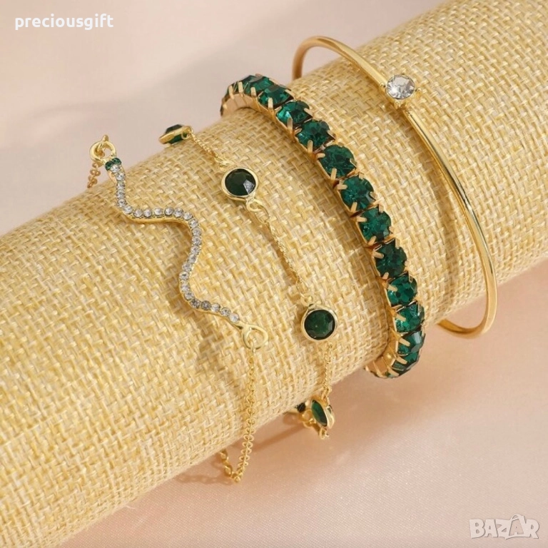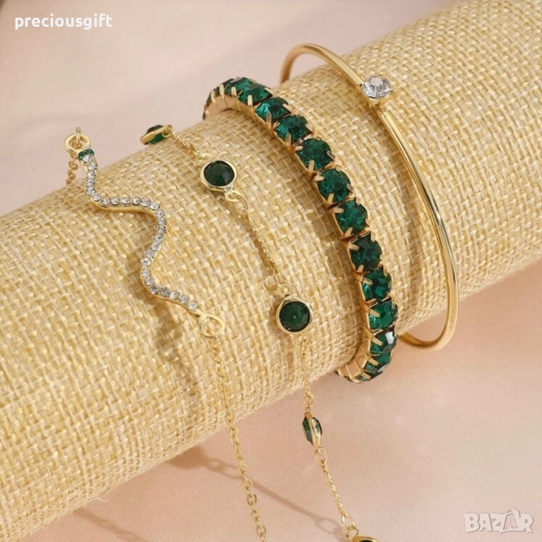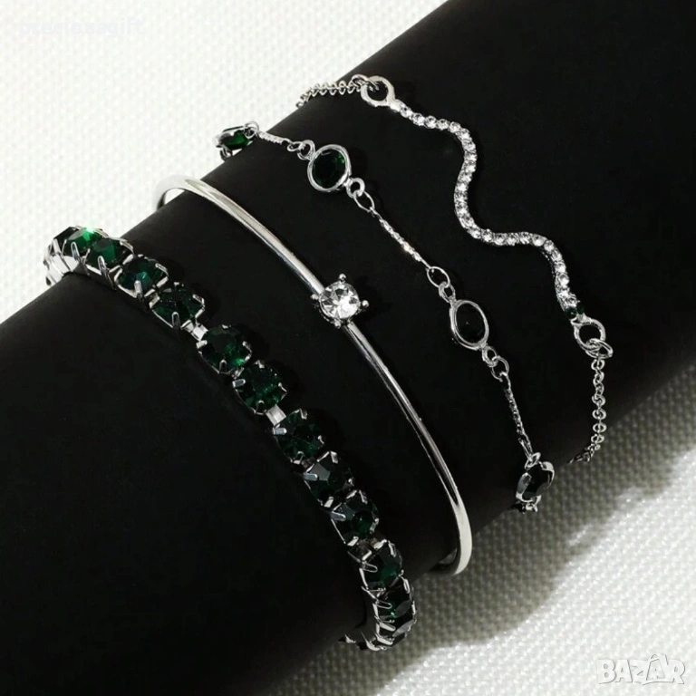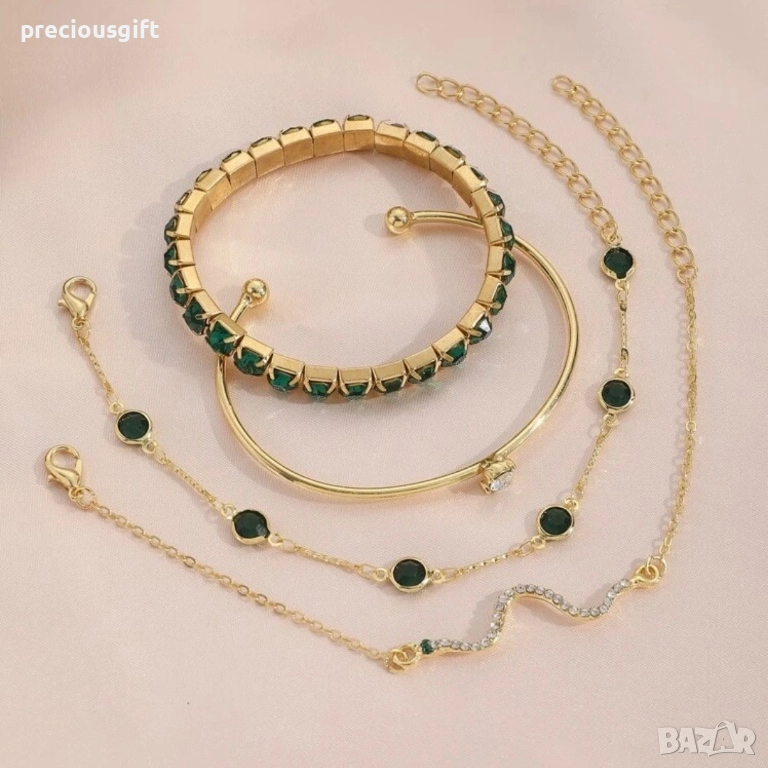 Комплект бижута - 4 броя гривни, наличен в 2 цвята - злато или сребро → Обява 52913392