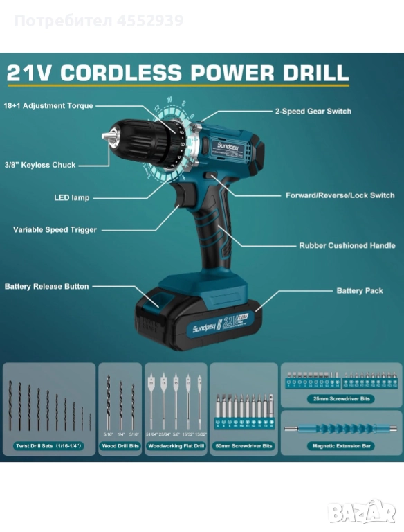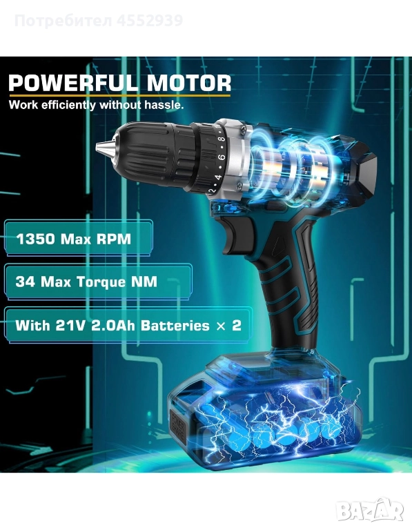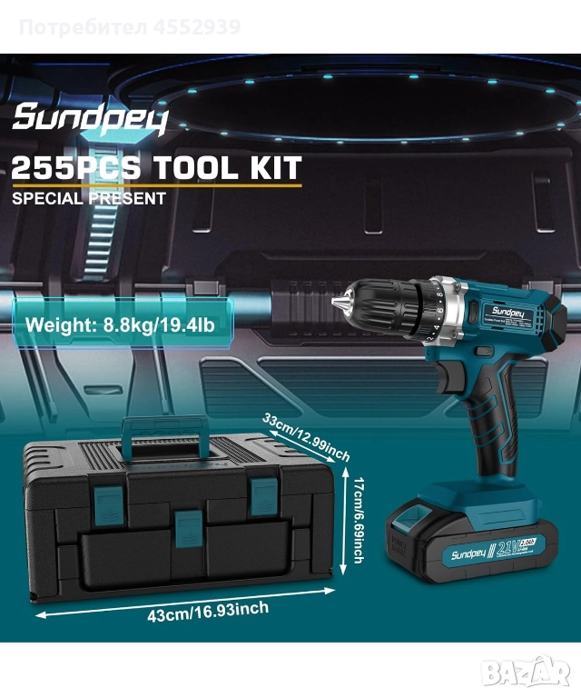 Нов комплект от 255 части, винтоверт с 2 батерии, зарядно... 239 лв. Нов, неизползван