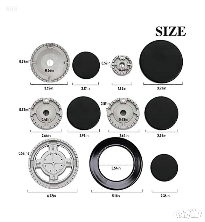 Комплект капачки за котлон, 6 капачки и 5 разпръсквачи на пламък, метал. → Обява 52913645