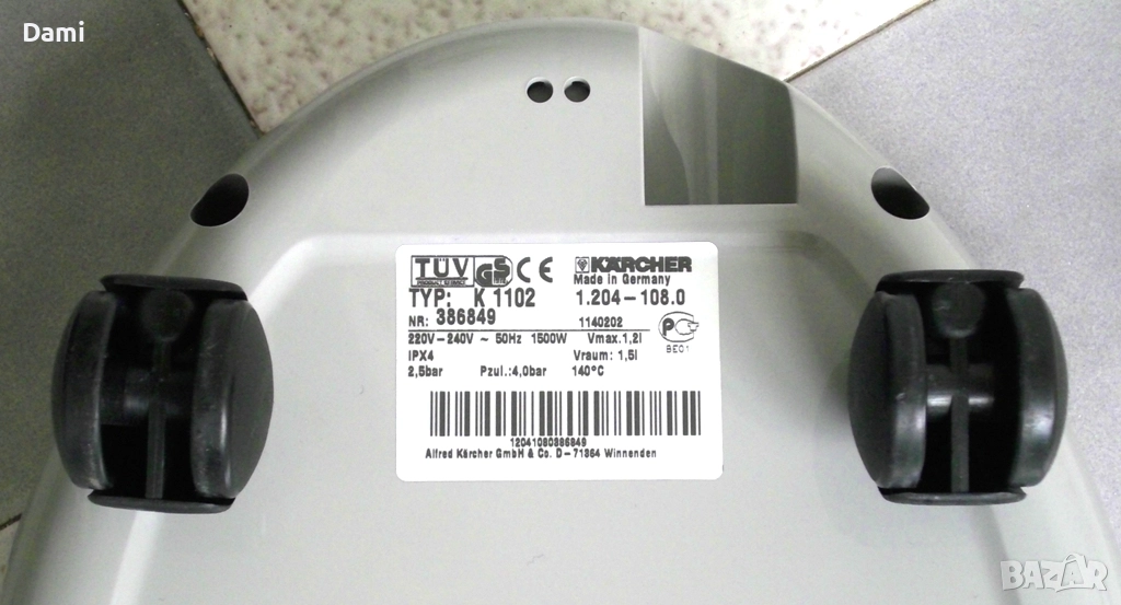 Резервни части за парочистачка КерхерVaporapid К 1102, германско производство. Частите са демонтирани от модел 1.204-108.0 и са в пълна изправност, здрави, без забележки: