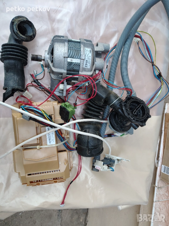 Продавам работещ ел.мотор с ремъка, Водната помпа, ел.инсталацията заедно с платката и силовия кабел на пералня Whirlpool 6 sense 8 kg FWG81284WEU. Всички компоненти работят.