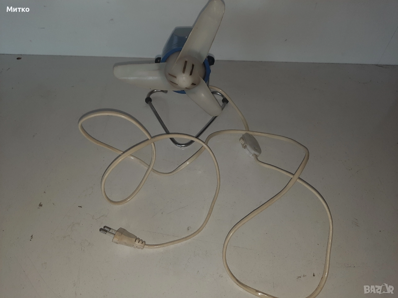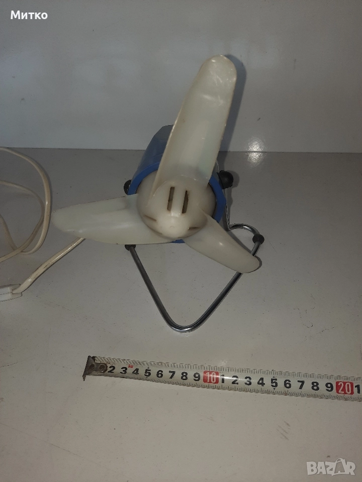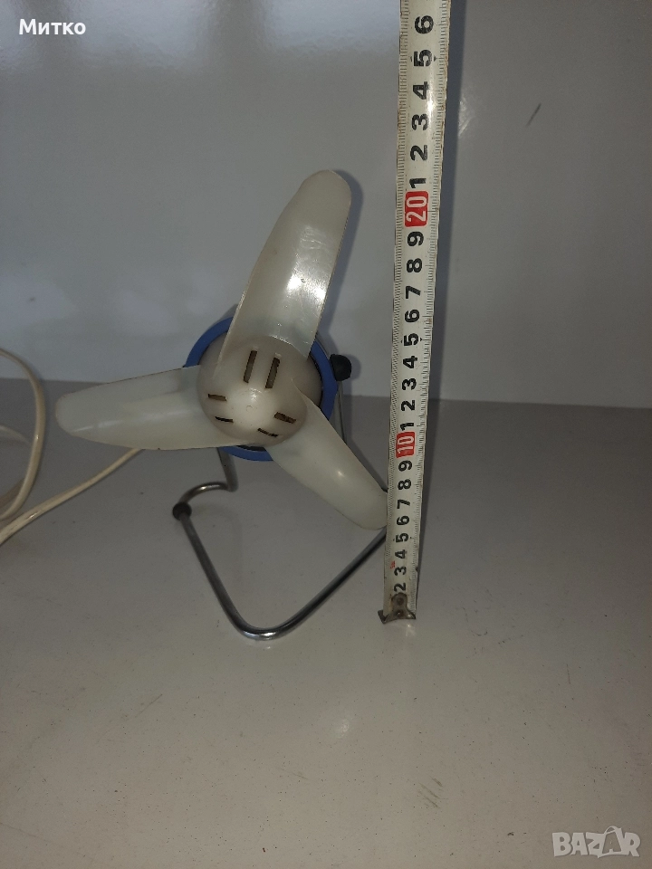 Работещ малък настолен вентилатор. Има две степени на охлаждане.Размерите ги има на снимките.