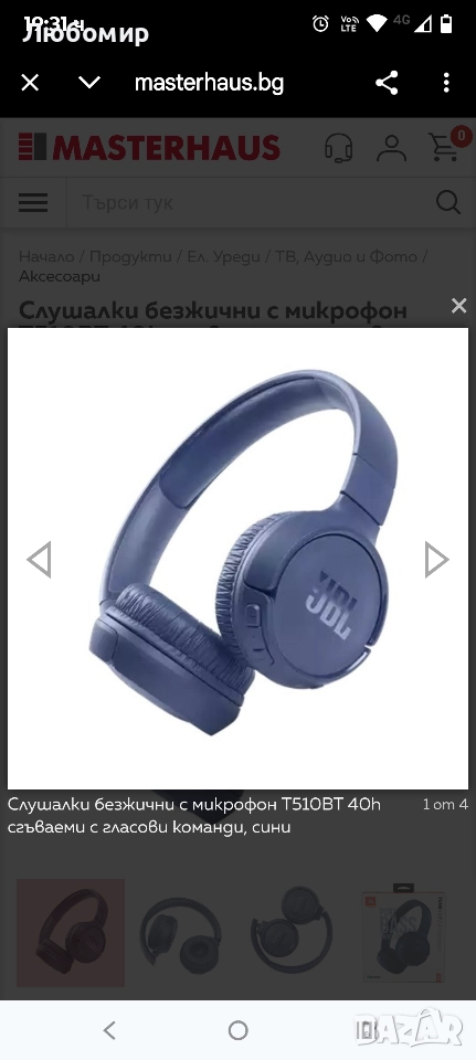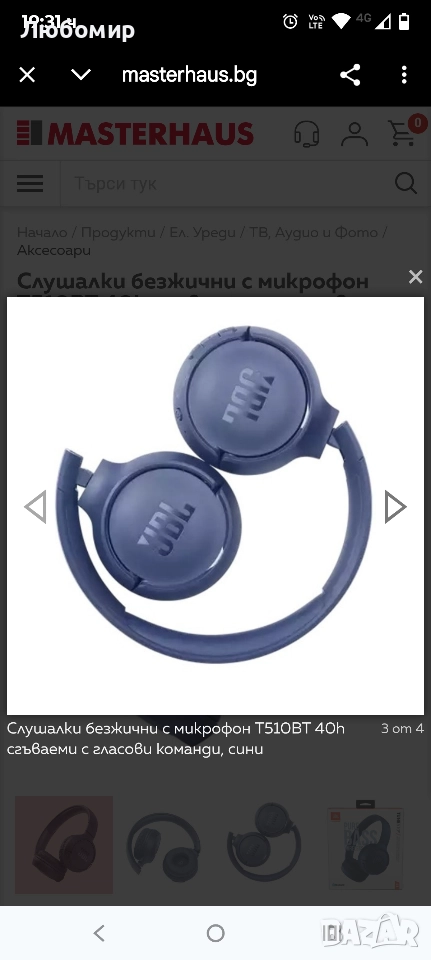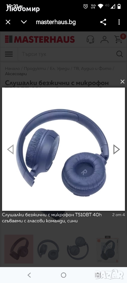Слушалки безжични с микрофон T510BT 40h сгъваеми с гласови команди, сини