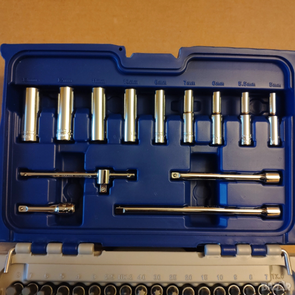 - 1/4" deep hex sockets: 5-5.5-6-7-8-10-11-12-13 mm.
