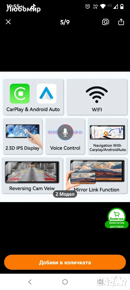【Безжично Apple Carplay и Android Auto】Достъпвайте любимите си приложения, докато шофирате. Използвайте Siri или Google Assistant за навигация, осъществяване на повиквания, проверка на имейли и слушане на музика