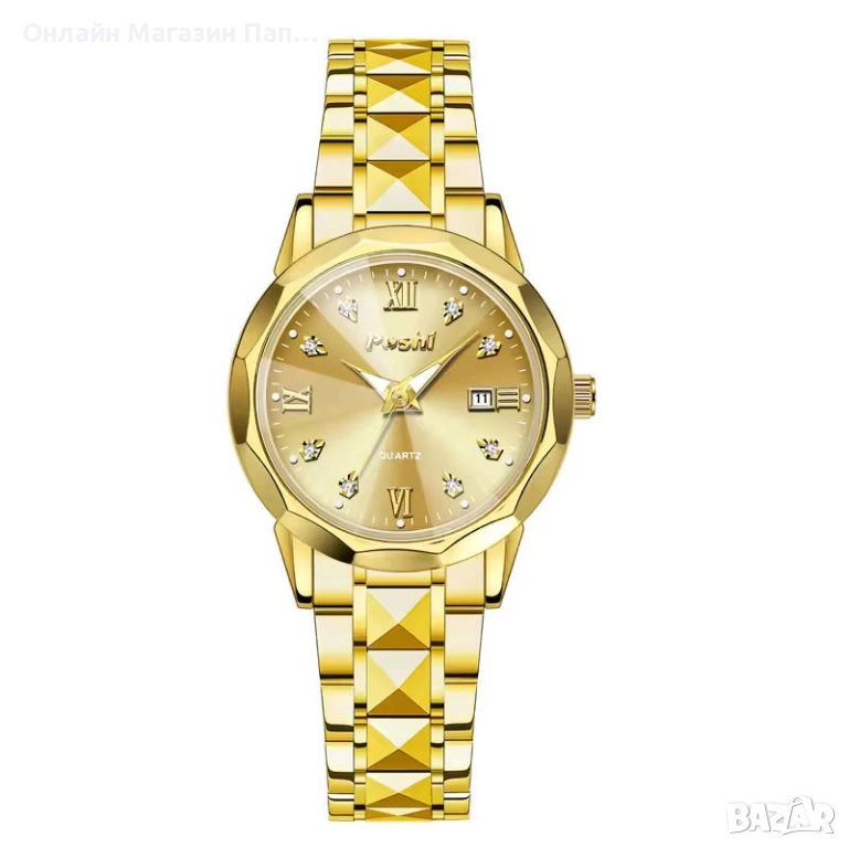 Часовникът е оборудван с кварцов механизъм, функция дата (календар) и луминисцентни стрелки за по-добра четимост при слаба светлина. Металната верижка впечатлява със специални пирамидални сегменти, които придават стилен и отличителен акцент.