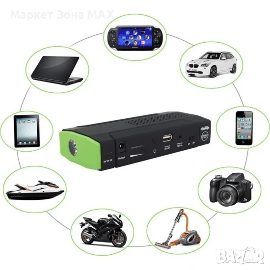 Джъмп стартер: Стартов ток 300А и пик 600А – подходящ за запалване на автомобили при спаднал акумулатор.