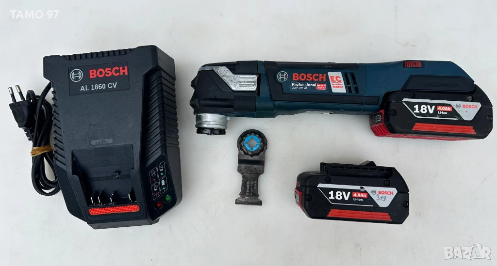 Продавам акумулаторен безчетков многофункционален инструмент (мултишлайф, реноватор) на Бош с потенциометър за регулиране на оборотите. Машината е в отлично визуално състояние, както се вижда на снимките и работи перфектно, оригинално малайзийско производство внос от Франция. Обявената цена включва машината, 1 броя приставка, 2 батерии по 18V 4.0Ah с индикатор, бързо зарядно и оригинален L-Boxx куфар. Може и само машината за 125евро. Пращаме с опция преглед и тест с куриерска фирма еконт може и лично предаване за гр. Шумен. Магазинската цена на комплекта е: 540.81евро