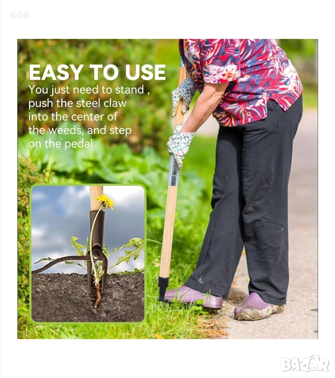【 Иновативен дизайн 】 Нашият инструмент за борба с плевелите е с иновативен дизайн на педала, осигуряващ по-голямо усилие за лесно контролиране на плевелите. Стига да се приложи достатъчно сила, тя ще проникне в почвата, ще захване плевелите, корените и всичко останало, предотвратявайки регенерацията. Много подходящ за озеленяване на градини, задни дворове и предни дворове, той е идеалният инструмент за леснодостъпни плевели.