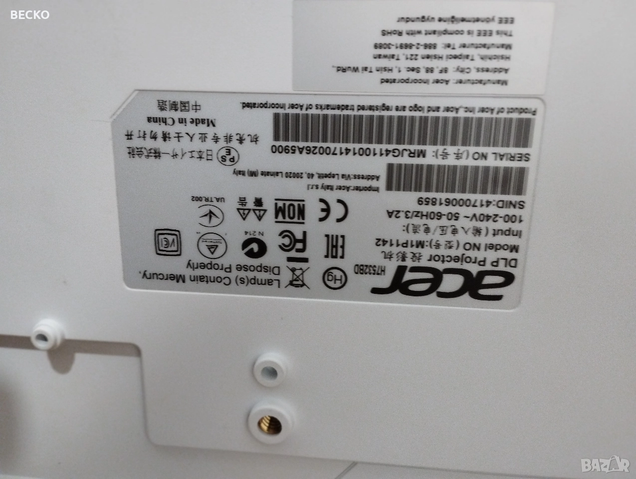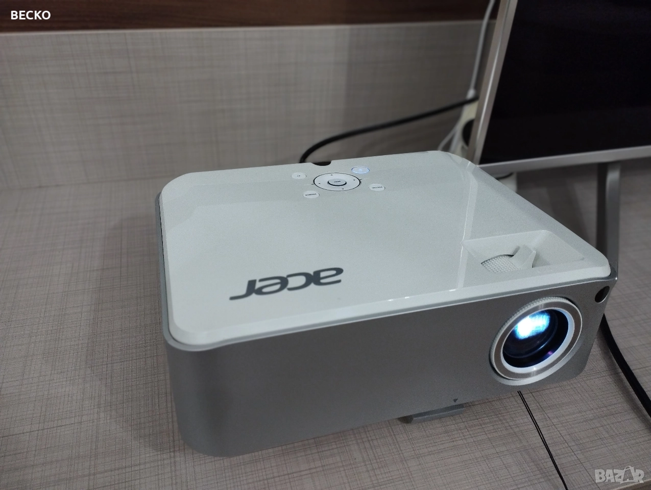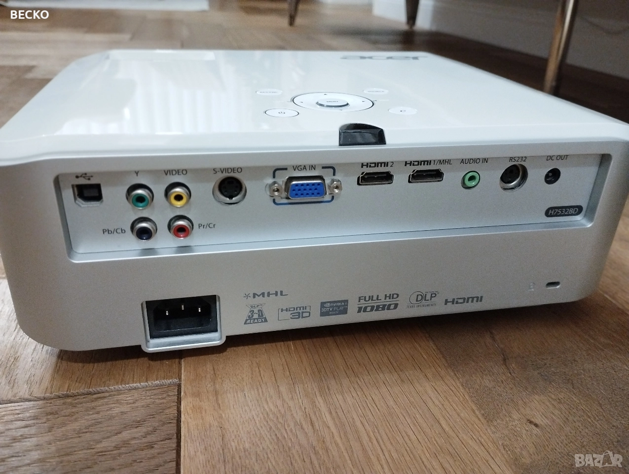 Проектор Acer H7532BD Full HD Тип проектор: DLP с лампа Резолюция: Native 1080p (1920 × 1080) — пълно HD качеството на картината , Максимална поддържана резолюция: до 1920 × 1200 , Съотношение на изображението: 4:3 и 16:9 поддържани , Цветове: поддържа до ~1.07 млрд. цвята Проекция & оптика:----+-+ Размер на изображението: от ~38″ до 300″ (диагонал) Разстояние за проекция: от ~1.5 m до 10 m Обектив: ръчен фокус + ръчен zoom (1:1.2) Корекция на трапец: ±40° (вертикално) Цифрово увеличение: 2× 3D режим ------- Лампа и живот: Тип лампа: 230 W, сменяема от потребителя , (Информацията за живот в часове липсва в тази част, но като стандартни DLP проектори обикновено лампите са ~3-7 000 ч) ------- Входове / портове: VGA (компютър вход) ,HDMI Composite (композитно видео) --------Звук и консумация Вграден високоговорител: 3 W × 1 Консумация: нормален ~300 W / ECO ~250 W Температурен диапазон: 0 °C – 40 °C --------Размери и тегло Размери (Ш × Д × В): ~294 × 229 × 95 mm Тегло: ~3.2 kg ----+----- Това е доста сериозен Full HD DLP проектор, подходящ за домашно кино, филми и презентации с големи изображения до 300″. Поддържа истински 1080p, има ръчен zoom и якеystone корекция, а лампата може да се сменя, когато се износи. Проектора работи отлично ,в комплект с оригиналното си дистанционно и чанта . За Варна ,лично предаване !