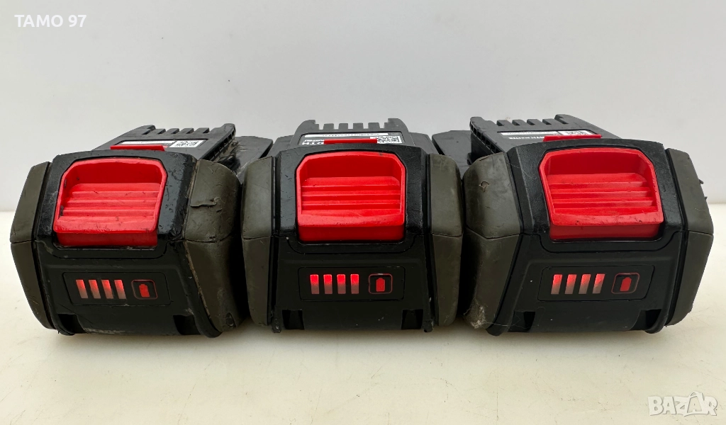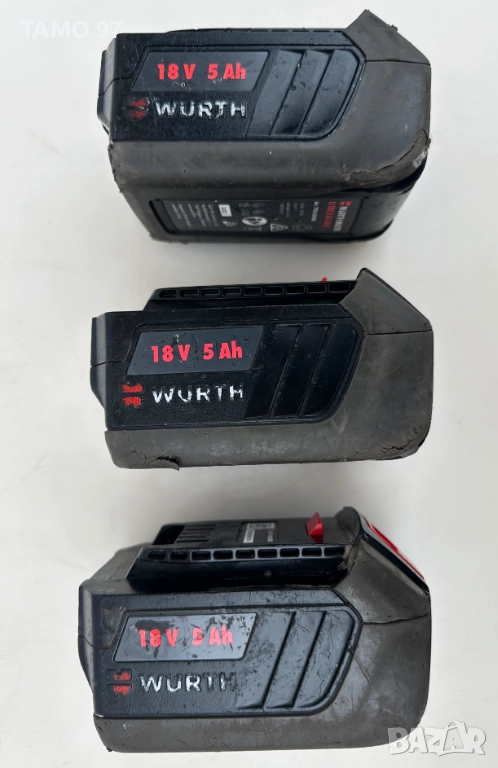 Продавам 3 броя акумулаторни батерии на Вюрт 18V 5.0Ah с индикатор от серията M-CUBE. И трите батерии са работещи и държащ заряд, цената е съобразена с козметични следи, внос от Франция. Обявената цена е за една батерия или може пакетна цена за 3-те заедно за 120евро.Пращаме с опция преглед и тест с куриерска фирма еконт може и лично предаване за гр. Шумен.