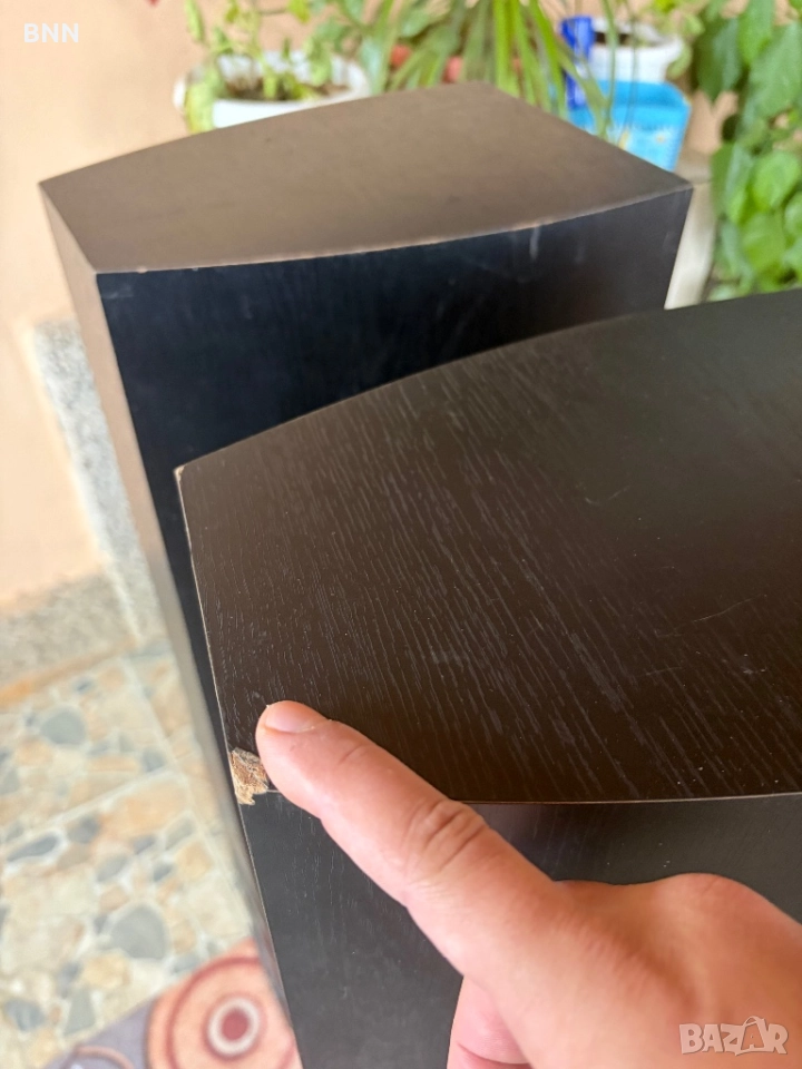 Тонколоните работят перфектно технически – говорителите са в отлично състояние, без ремонти или дефекти в звука. Визуално имат външни забележки по корпуса, които са детайлно заснети на снимките: