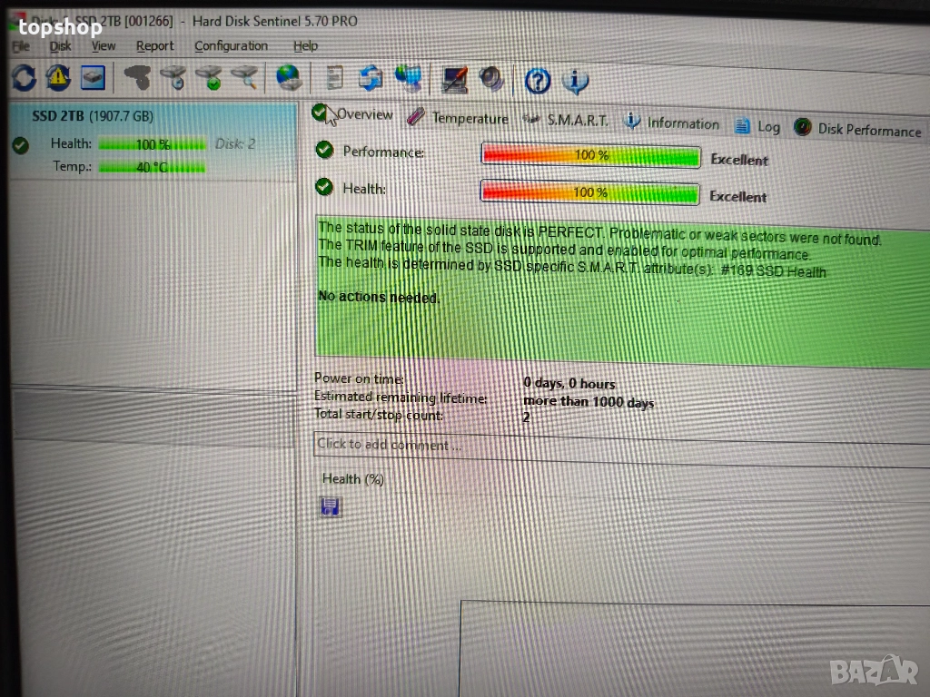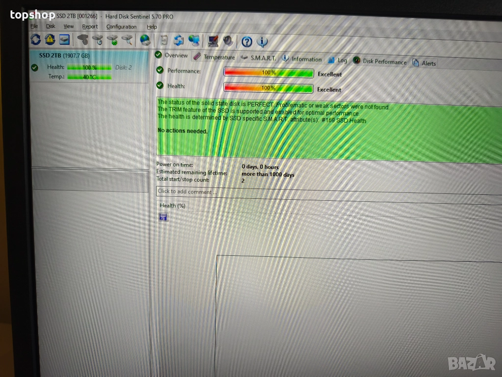 Чисто нови на 100% живот вътрешни SATA SSD дискове 2TB, тествани и разпознати от сантинел, прилагам снимки.