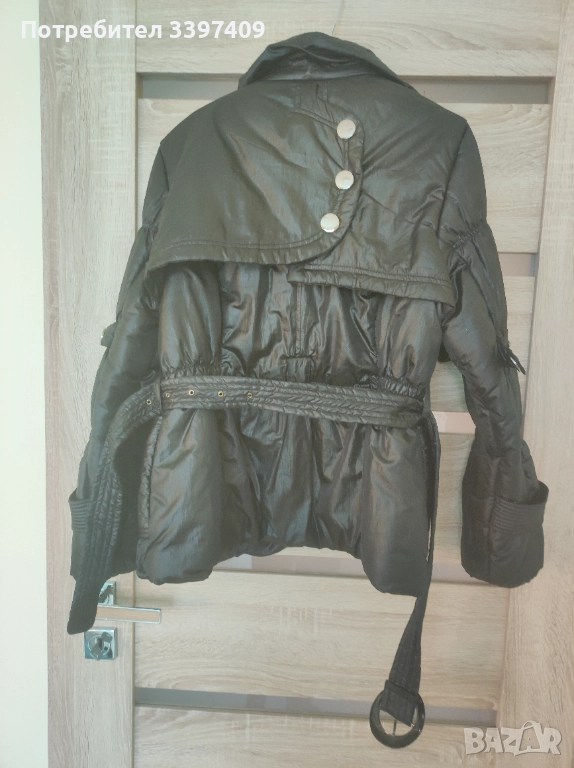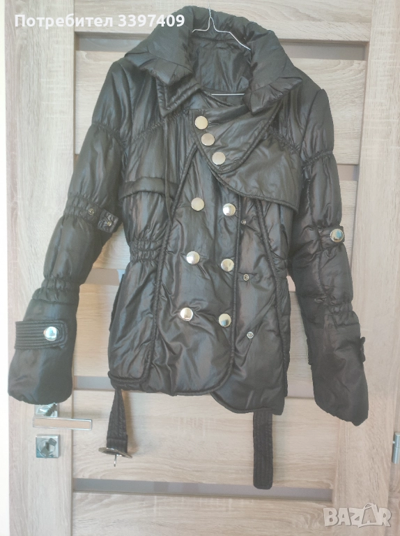 Продавам употребявано дамско яке, на живо е по наситено черен. М размер. Носено е за кратко, напълнях рязко.