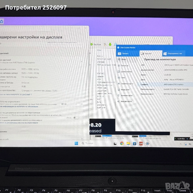 Lenovo Gaming 3 Gen 6/16,6” IPS/Ryzen 5 5600H/GTX 1650/16GB/512GB NVMe → Обява 52917528