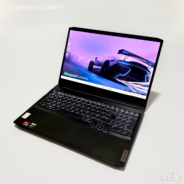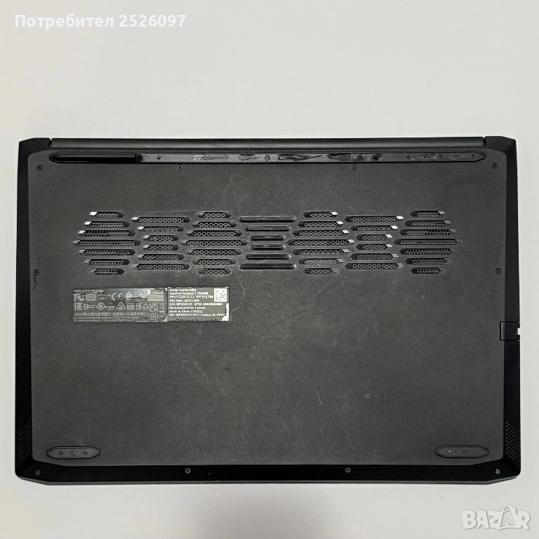 Лаптоп Lenovo IdeaPad Gaming 15ACH6 в отлично състояние,с минимални следи от употреба,технически перфектен.Липсват силиконовите гумички на долния капак.