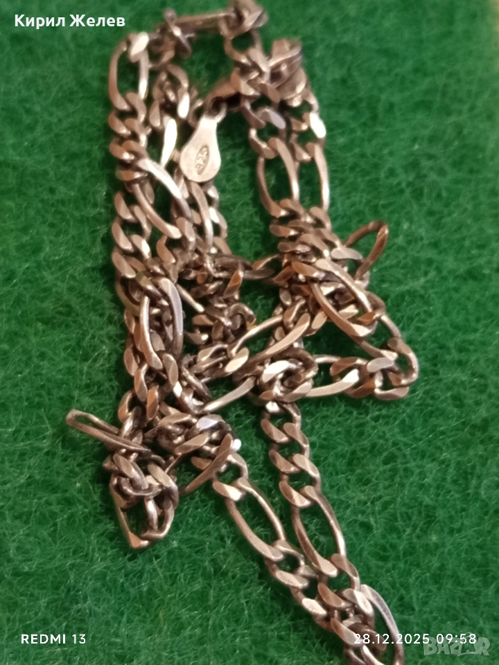 Сребърен ланец плетка тип КАРТИЕ Italy много красив стилен дизайн 40477