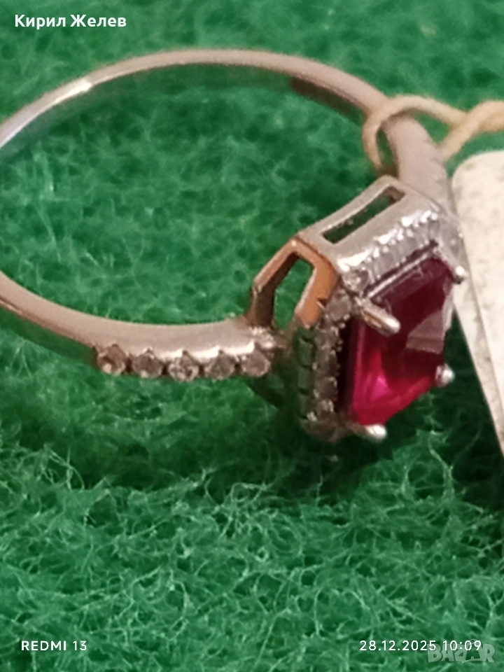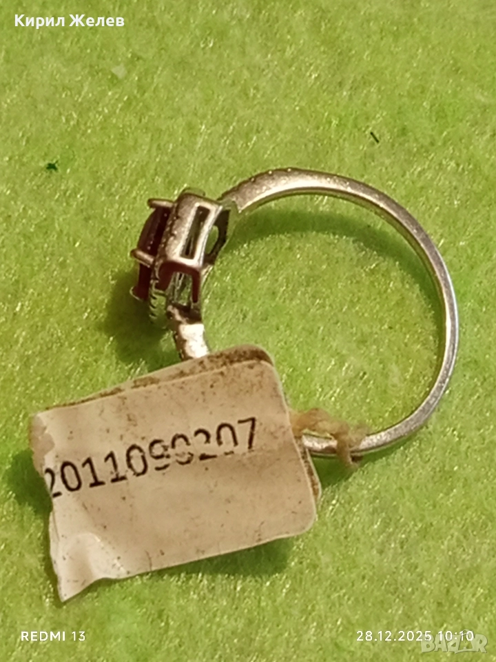 Сребърен пръстен украсен с ТУРМАЛИН ДИНЯ и БРИЛЯНТИ ювелирна изработка 29355