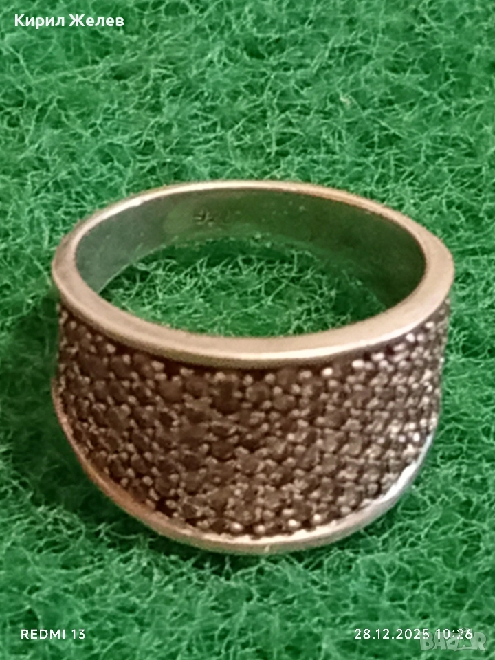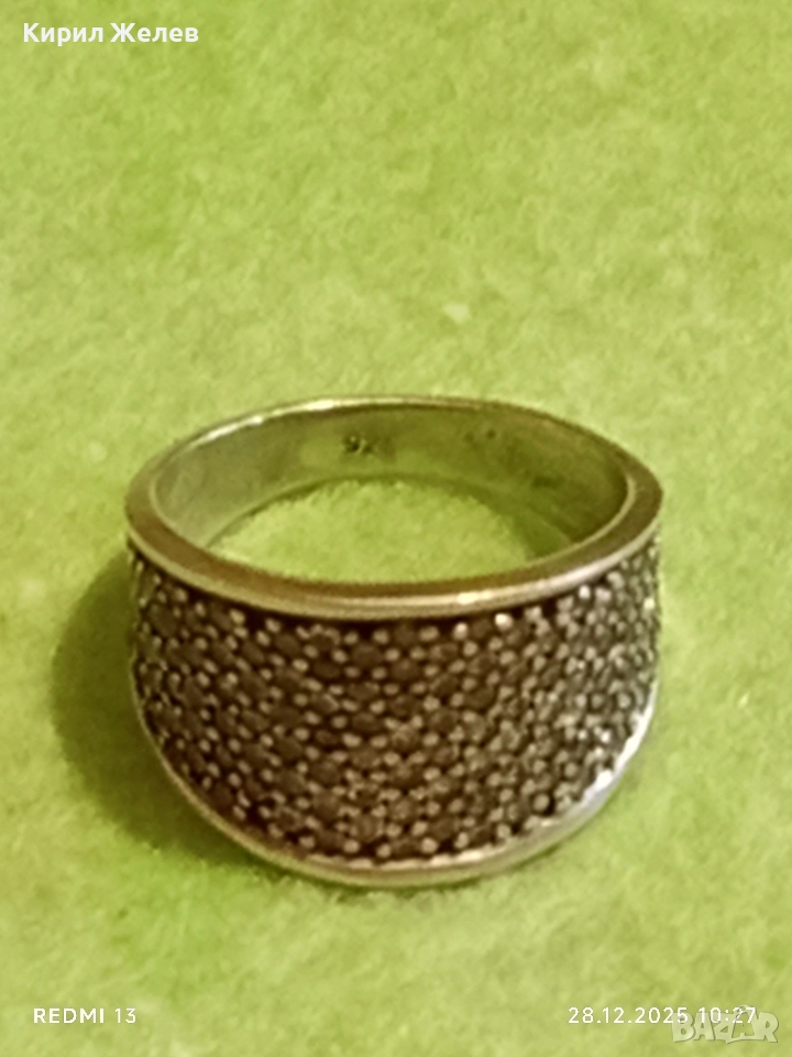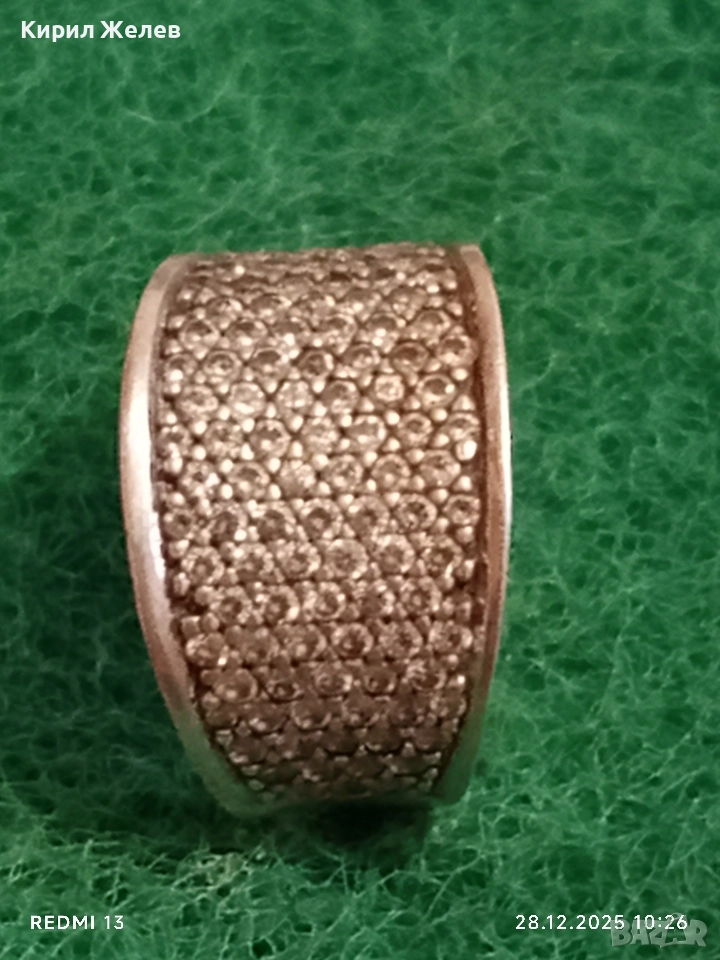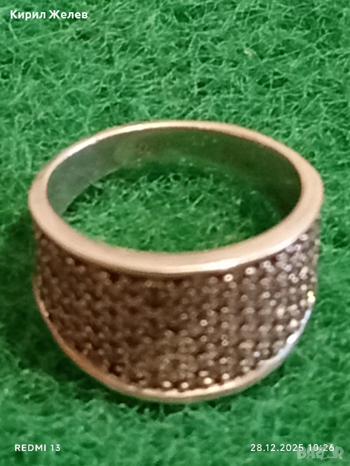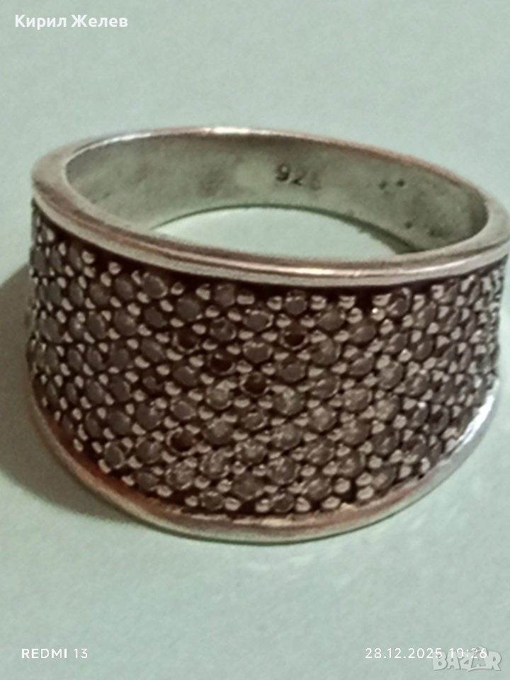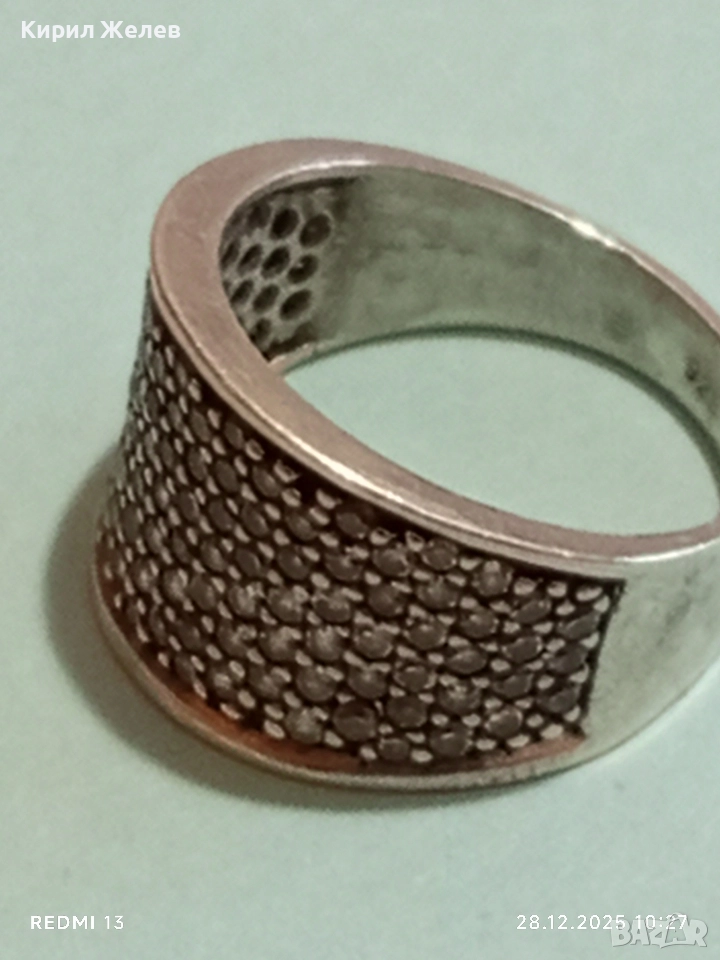 Прекрасен скъпоценен сребърен пръстен с ювелирно инкрустирани цирконий ръчна изработка 39744