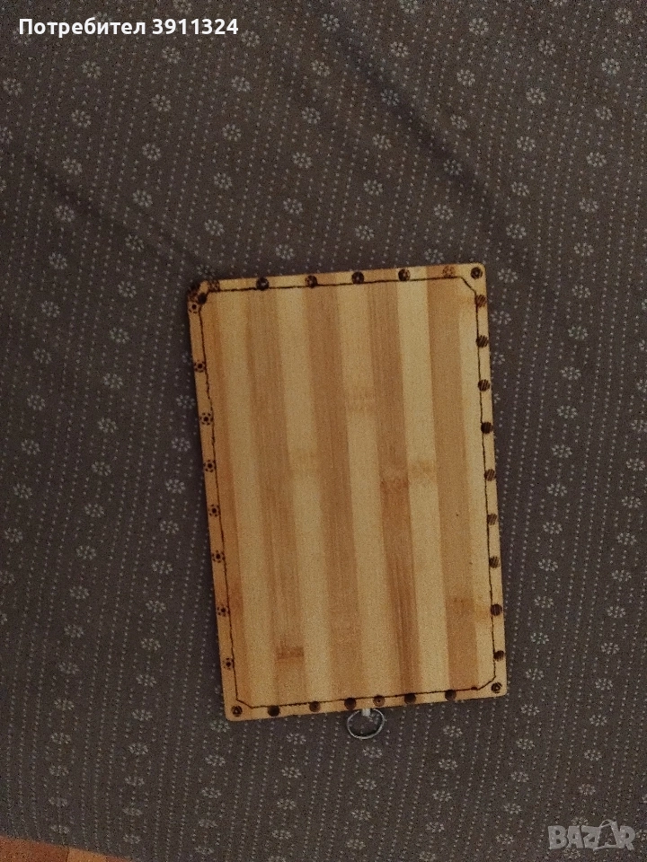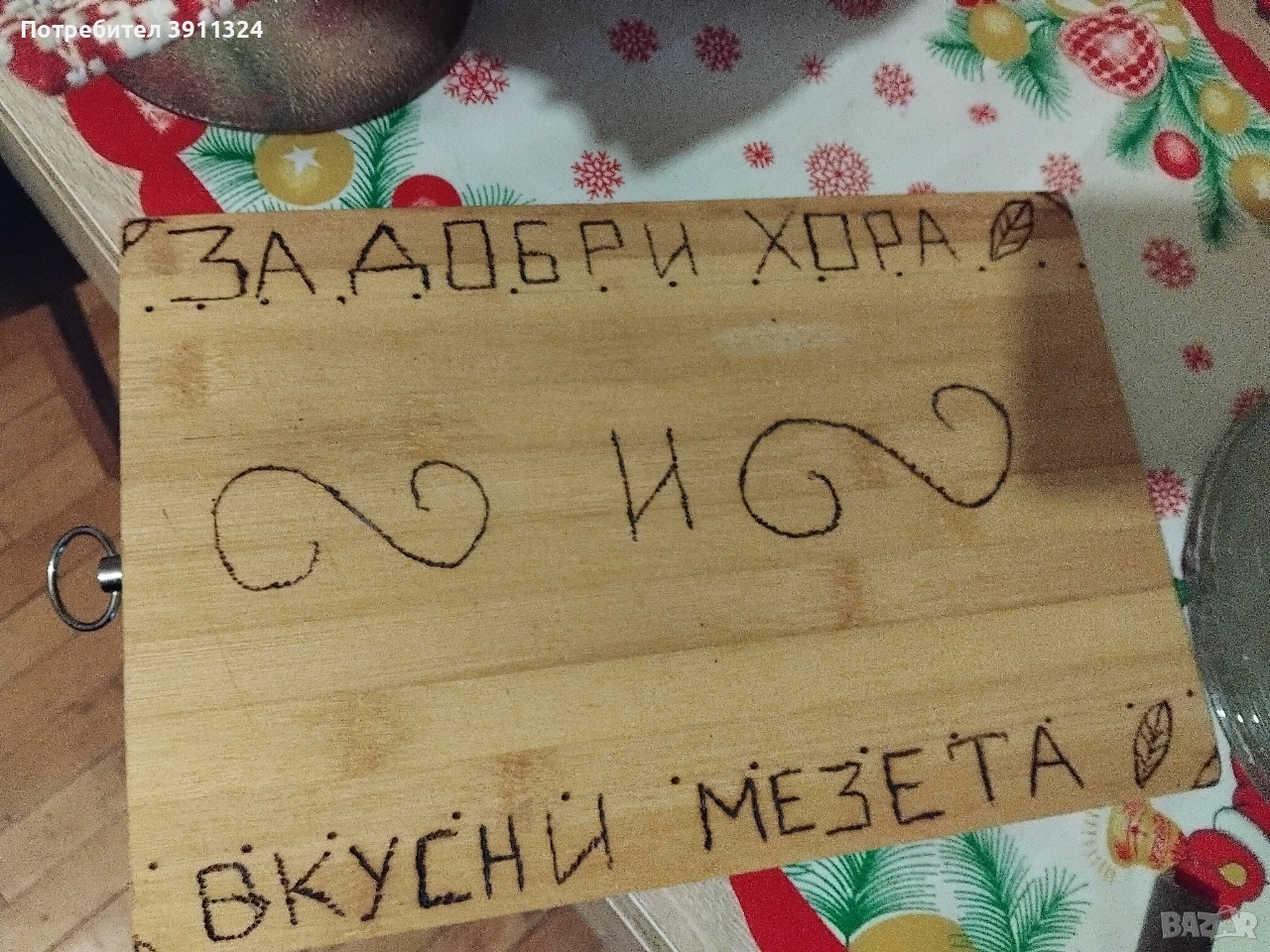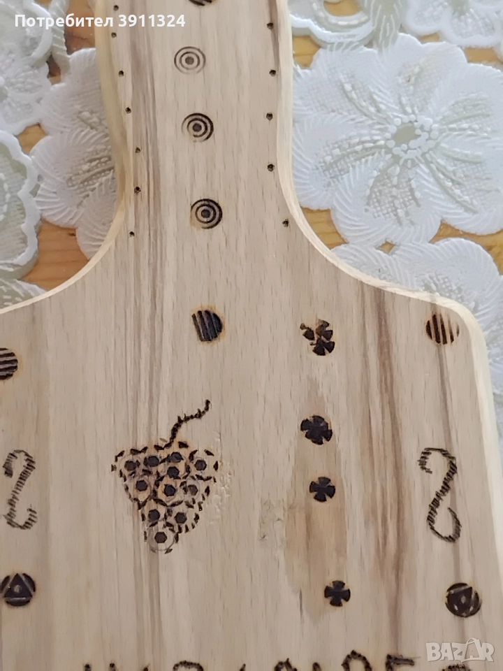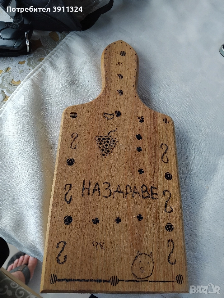 Обработка и поставяне на надписи на дъски за рязане на мезета, бъркалки, дървени лъжици и сувенири.Закупени от вас,изпращате ги с курие ,а аз само ги обратвам.Има и обция закупуване от мен,но тогава цената е друга.С надпис по ваш избор. Подходящи за посрещане на гости,за подарък или само за сувенир. Цени се определят в зависимост от обработката. За повече информация по телефона.За София може и лично предаване,също така и има общия доставка до адрес и опаковане срещу допълнително заплащане по договаряне в зависимост от работа и времето.