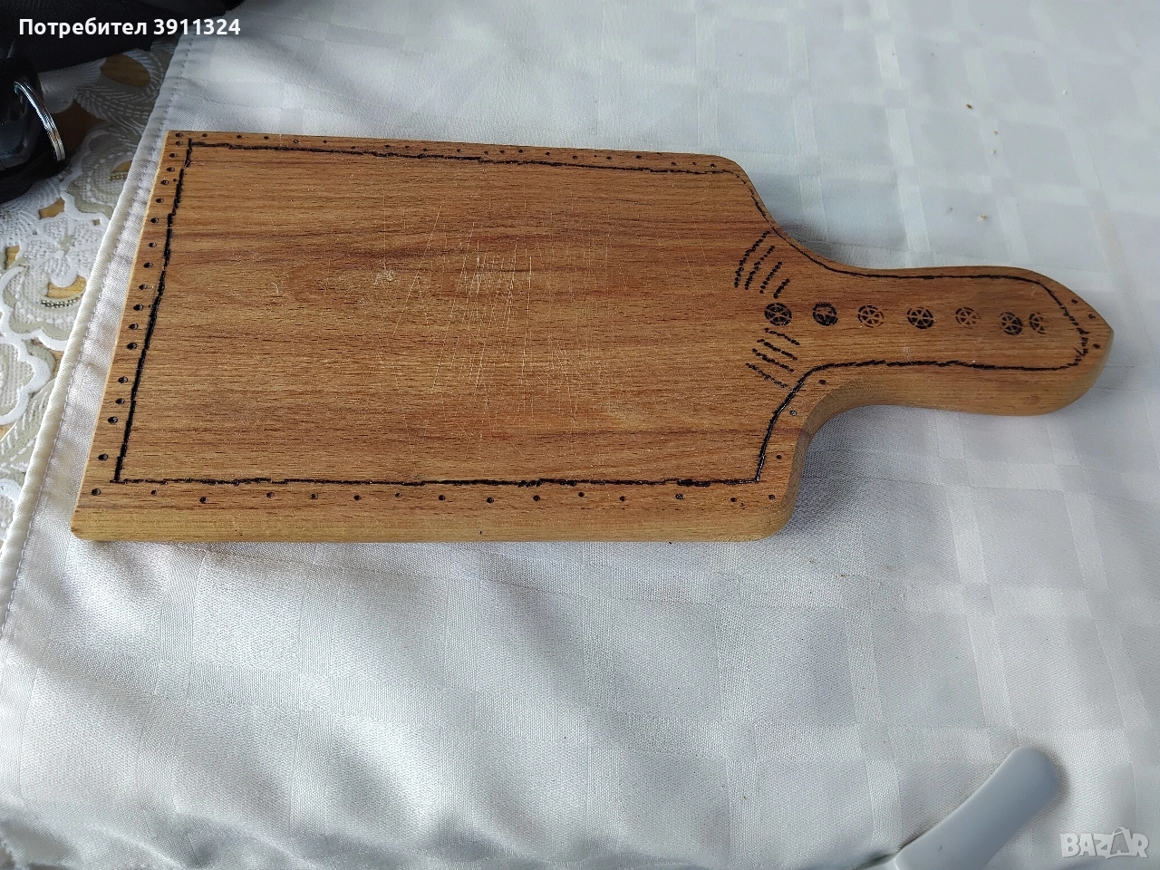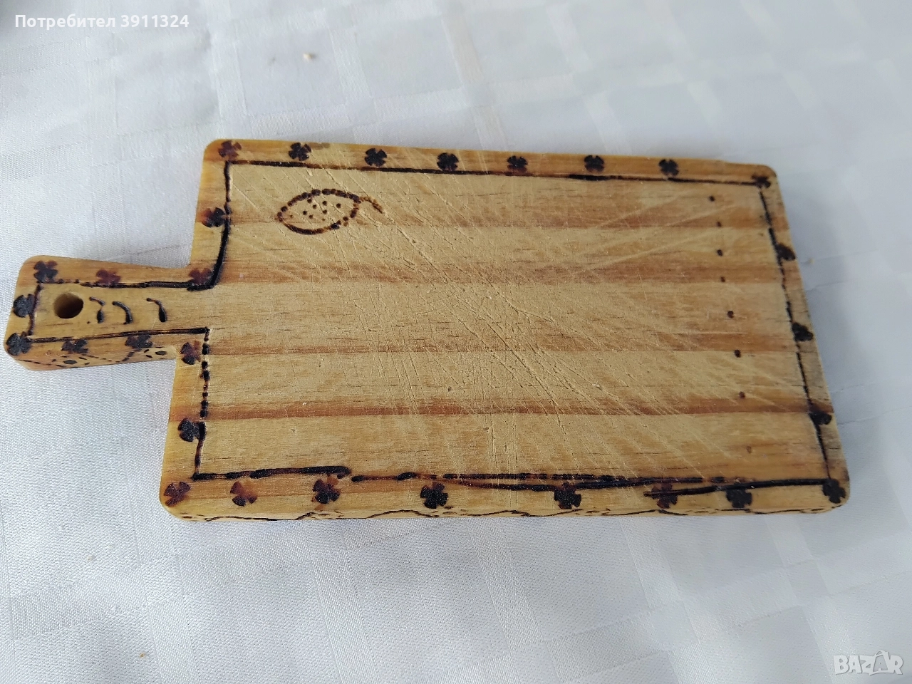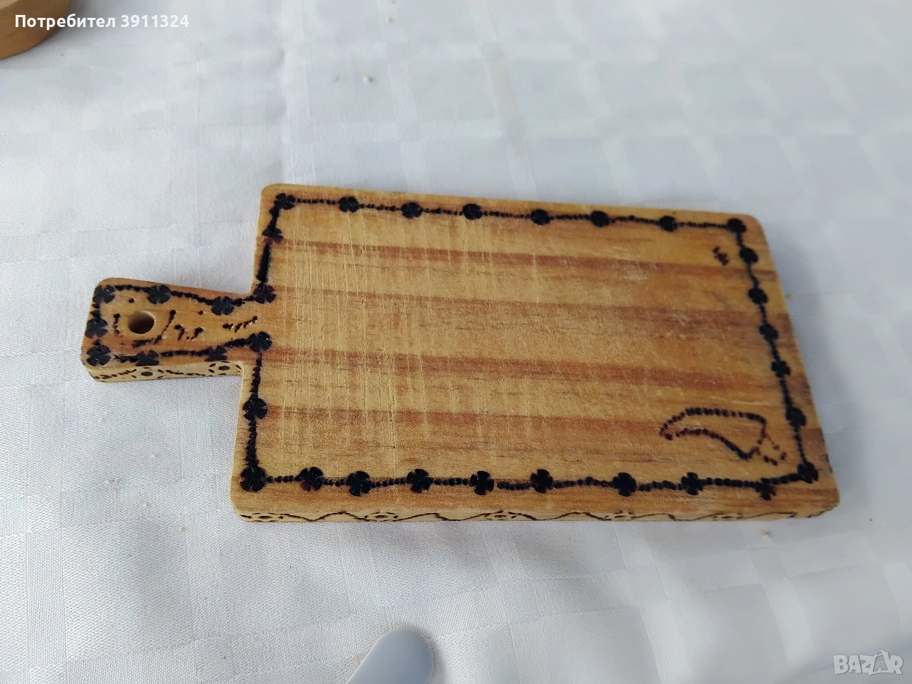 Обработка и поставяне на надписи на дъски за рязане на мезета, бъркалки, дървени лъжици и сувенири.Закупени от вас,изпращате ги с курие ,а аз само ги обратвам.Има и обция закупуване от мен,но тогава цената е друга.С надпис по ваш избор. Подходящи за посрещане на гости,за подарък или само за сувенир. Цени се определят в зависимост от обработката. За повече информация по телефона.За София може и лично предаване,също така и има общия доставка до адрес и опаковане срещу допълнително заплащане по договаряне в зависимост от работа и времето.